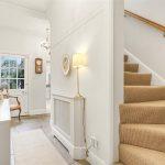 Staircase from the inner hall with banister rail and oak spindles and newel posts and matching staircase to the second floor, coving, radiator within fitted radiator cover, feature recess, burglar alarm control pad, original sash window overlooking the rear garden.