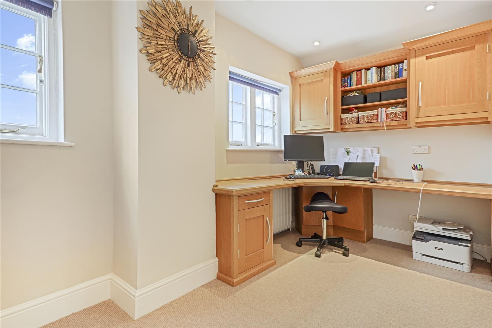 Approached by the matching staircase from the first floor landing with double glazed Velux rooflight with delightful rear views towards Kenilworth Castle and over Abbey Fields, ceiling down lighters, and built-in storage cupboard with fitted lighting.