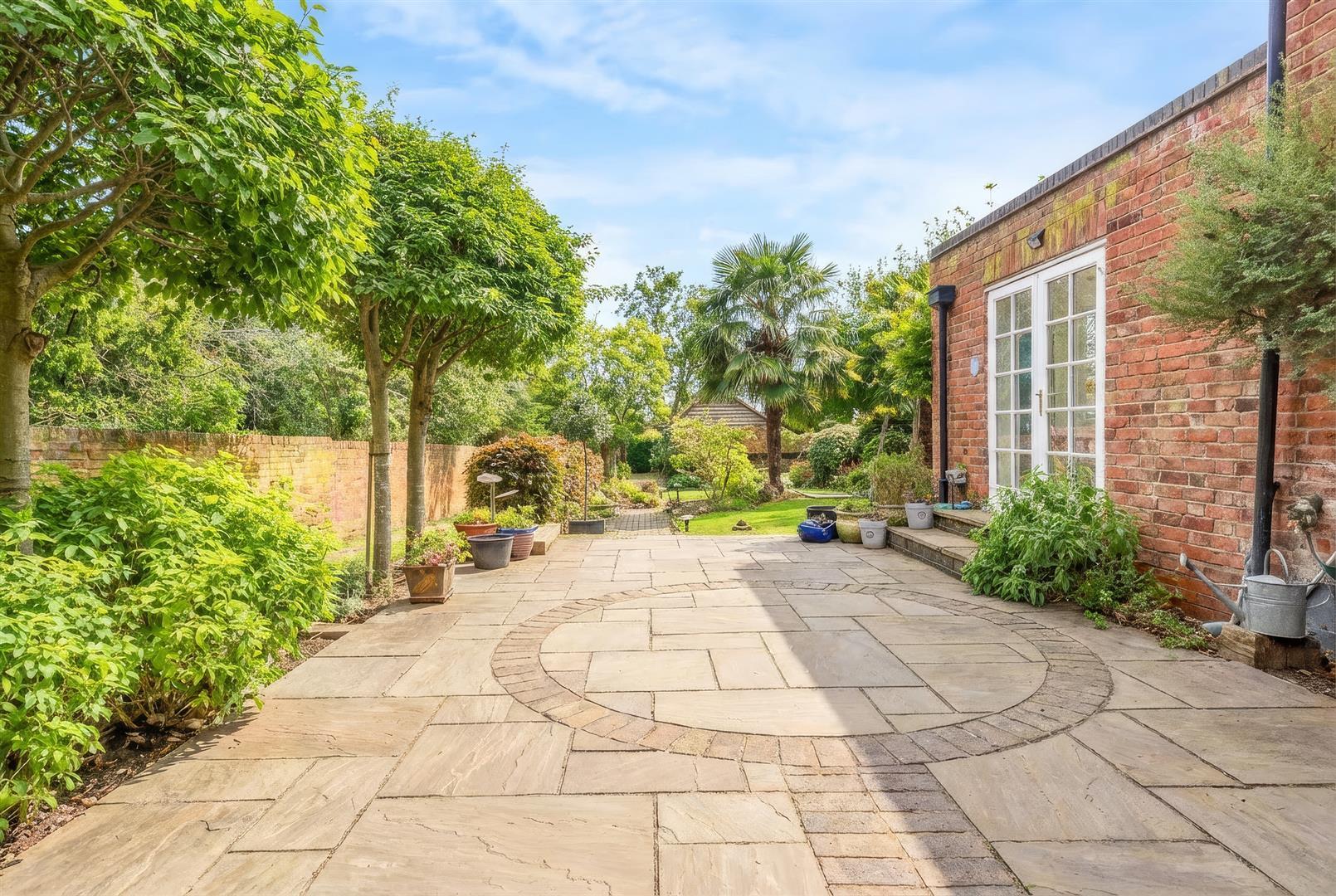 The rear garden faces ideally south westerly to get the maximum sunshine hours and best light. The professionally landscaped garden is laid out on three levels with a top entertainment patio with central blue brick inlay and ideal for alfresco dining and BBQs. There is external lighting, cold water and steps to the next level with lawn, flower beds, beech hedging and borders and a block paved path and a sheltered paved area with Acers trained over to provide summer shade. Further steps lead to the lower lawn with crescent paved path and additional planted beds and beech hedging. The garden is fully enclosed with external lighting and enjoys good privacy and seclusion.