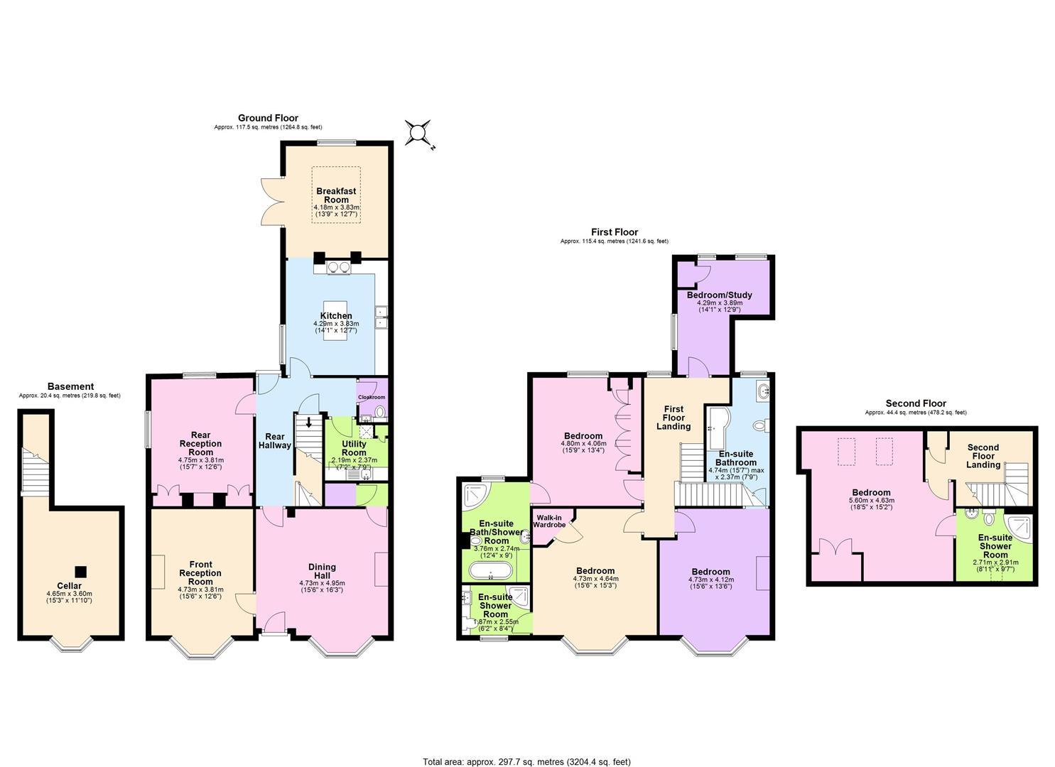 Access from the inner hall with brick steps with handrail, side storage shelving and coat hanging space leading to large dry storage cellar with front basement window, gas and electricity meters. There is potential to convert the cellar into a gym or cinema room.