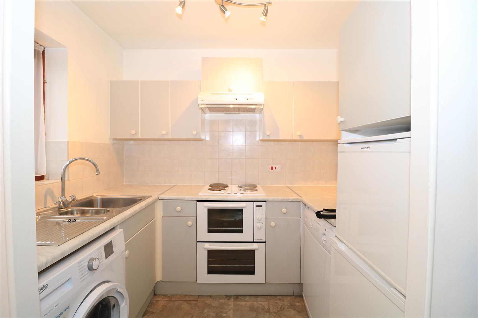 Fitted with whisper grey units to wall and base. The base units have a marble effect roll topped worksurface over with an inset stainless steel sink unit with mixer taps. Tiling to splashbacks. Newly fitted oven and induction hob and extractor canopy over. Fridge freezer, condensing tumble dryer and a washing machine. Double glazed window to the rear.