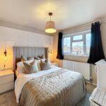 With a double glazed window to front, radiator, good size double door walk-in wardrobe with useful hanging rails and shelving, and attractive wood panelling to one wall.