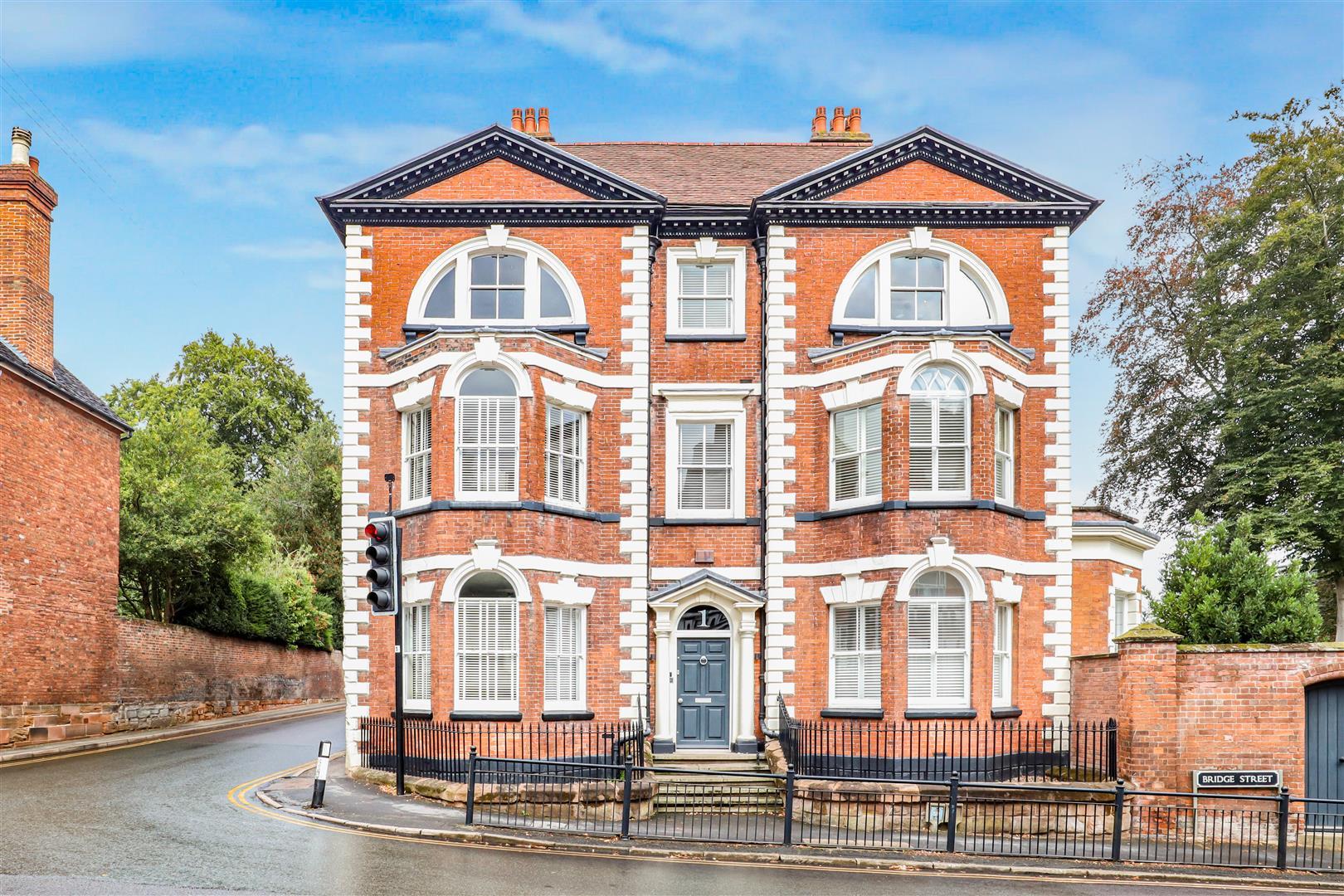 Entered from Bridge Street, you step into a stunning hallway with a tiled floor, decorative cornicing, and an easy-tread staircase rising to the first floor, with doors leading off to: