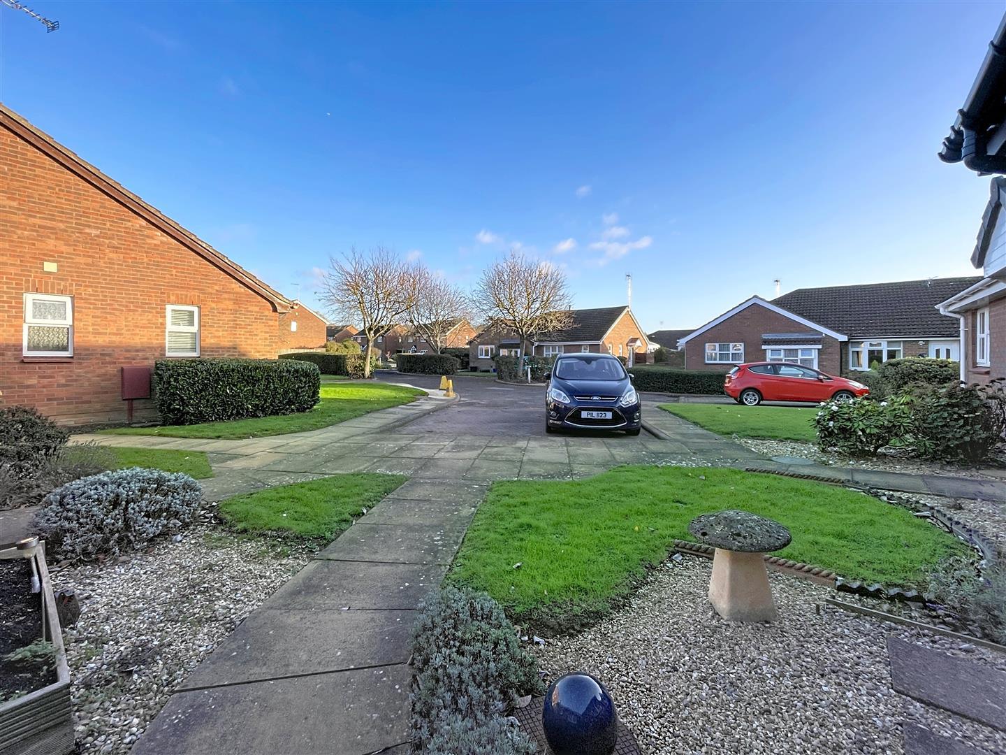At the front of the property is a well-maintained lawned garden with a pathway leading to the front door, along with a block-paved driveway available for parking on a first-come, first-served basis.