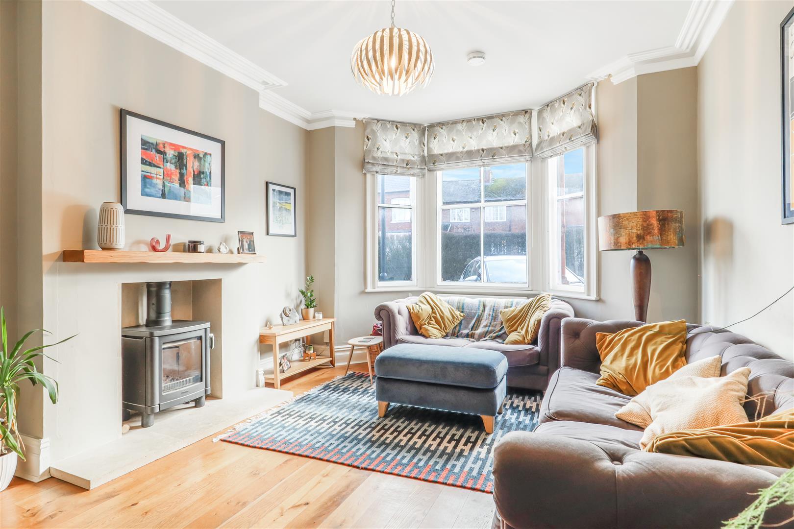 With a glazed walk-in bay window to the front featuring secondary glazing, along with an additional secondary-glazed window, a feature cast iron fireplace with a tiled hearth, matching surround and mantle, ceiling light, coving, and picture rail.
