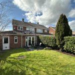 Approached over a block paved driveway to a replacement front door with matching opaque leaded glazed decorative insets leading into the