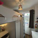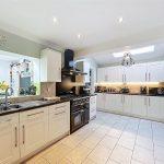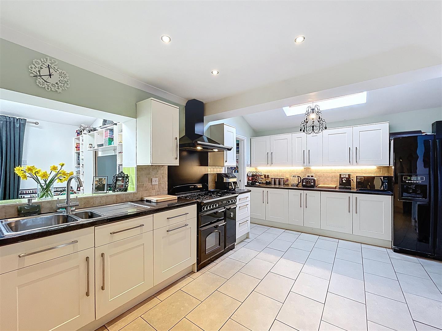 Comprehensively re-fitted with a range of matching high quality shaker style base and wall units with soft closing drawers and brushed steel handles, marble effect rounded edge work surfaces with one and a half bowl drainer stainless steel sink with central loop chrome mixer tap, decorative ceramic tiling to splash back areas, range of recessed ceiling down lighters, space for large rangemaster oven, space for large upright American style fridge/freezer, large velux roof window, radiator, PVCu double glazed door to front and panelled door through to the