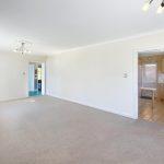 A generously proportioned dual aspect room offering space for both seating and dining. Features include dual radiators a central gas living flame effect fireplace with marble effect hearth and Adams-style surround.