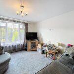 Featuring windows at the front and French doors leading to the rear patio, this space includes two ceiling lights, a television point, a wall-mounted television point, and two radiators.