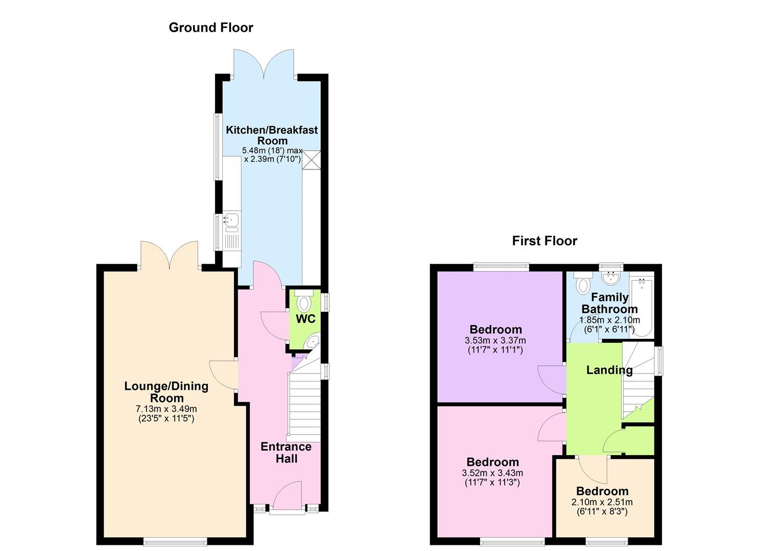 Over a block paved driveway with four steps to a feature brick arch open porch with quarry tiled floor, oak fronted door with matching full height frosted windows on either side into the