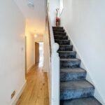With engineered oak flooring, a radiator, two ceiling lights, a smoke alarm, and stairs rising to the first floor, there is an understairs storage cupboard housing the electric isolation unit along with the electric and gas meters. A door leads to