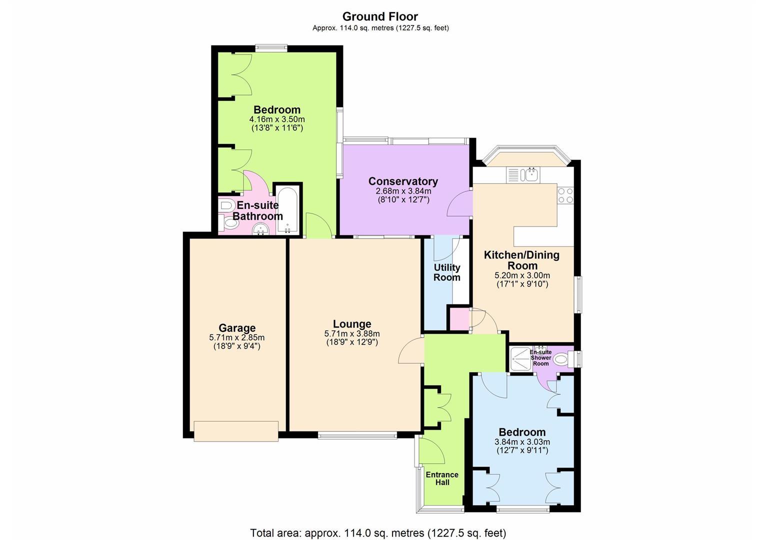 With side window, space for dining table with six chairs, central ceiling light, loft hatch access, radiator and storage cupboards.