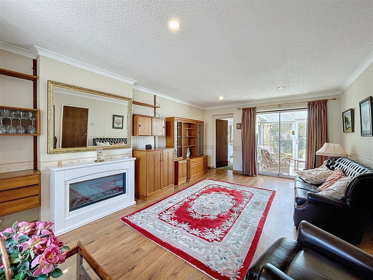 With a remote controlled electric fireplace, dual aspect from bay window to the front elevation and borrowed light from the sliding patio door at the rear, coving, central ceiling light and doors off to