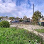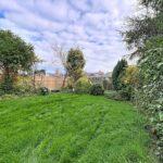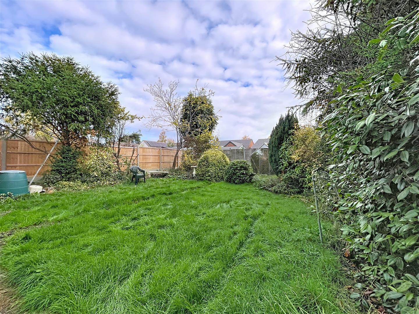 Fully enclosed by perimeter fencing, laid to lawn with a variety of bushes and shrubs with a central path and greenhouse, in need of landscaping.