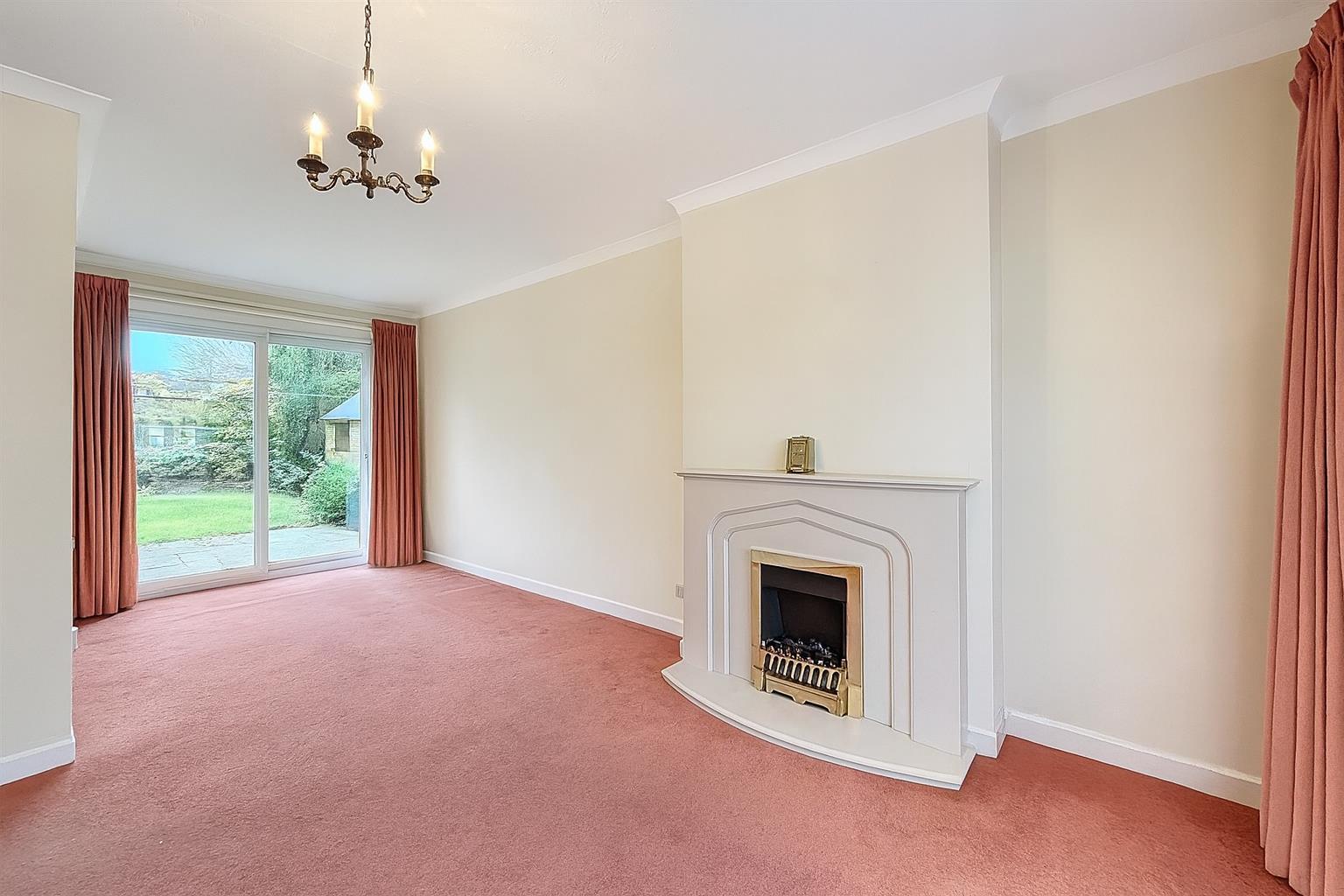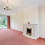 L shaped reception room with large window to front, t.v point, feature living flame effect electric fire with a polished stone inset and hearth with mantle and surround, radiator, two ceiling lights, upvc sliding patio doors into the rear garden.