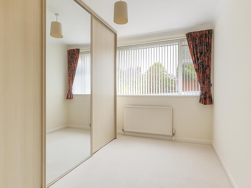 With window to the rear, radiator, and ceiling light. coving and fitted wardrobes with sliding doors and mirror insets with hanging rail and shelving.