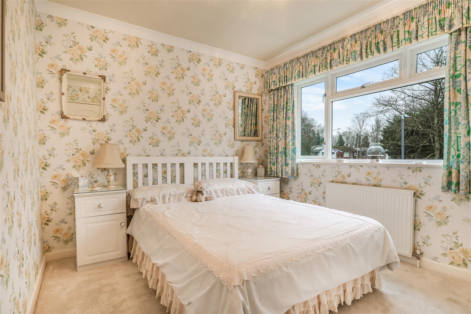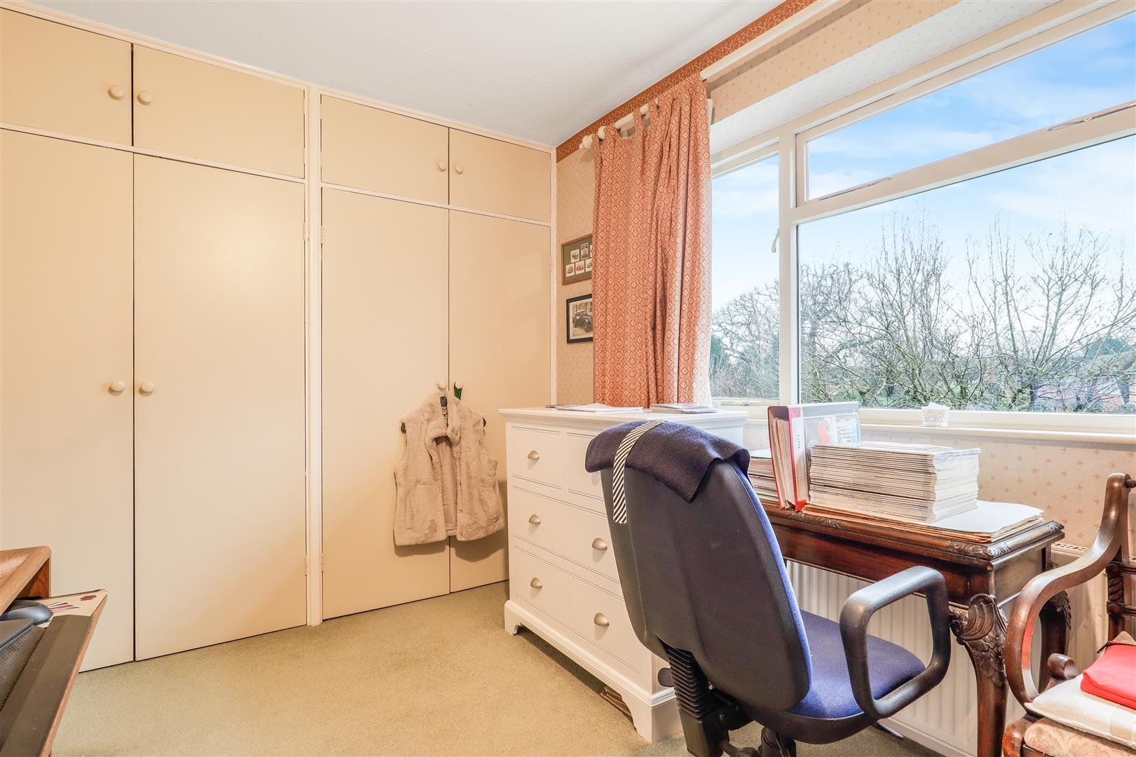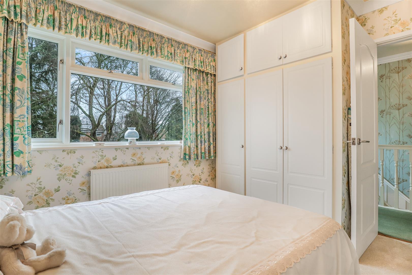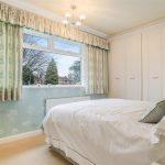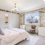 Featuring a window at the front, a radiator, a ceiling light, and coving. This room has built-in wardrobes along one wall, complete with hanging space and shelving, as well as matching bedside tables. There is also a door that leads to the bathroom.