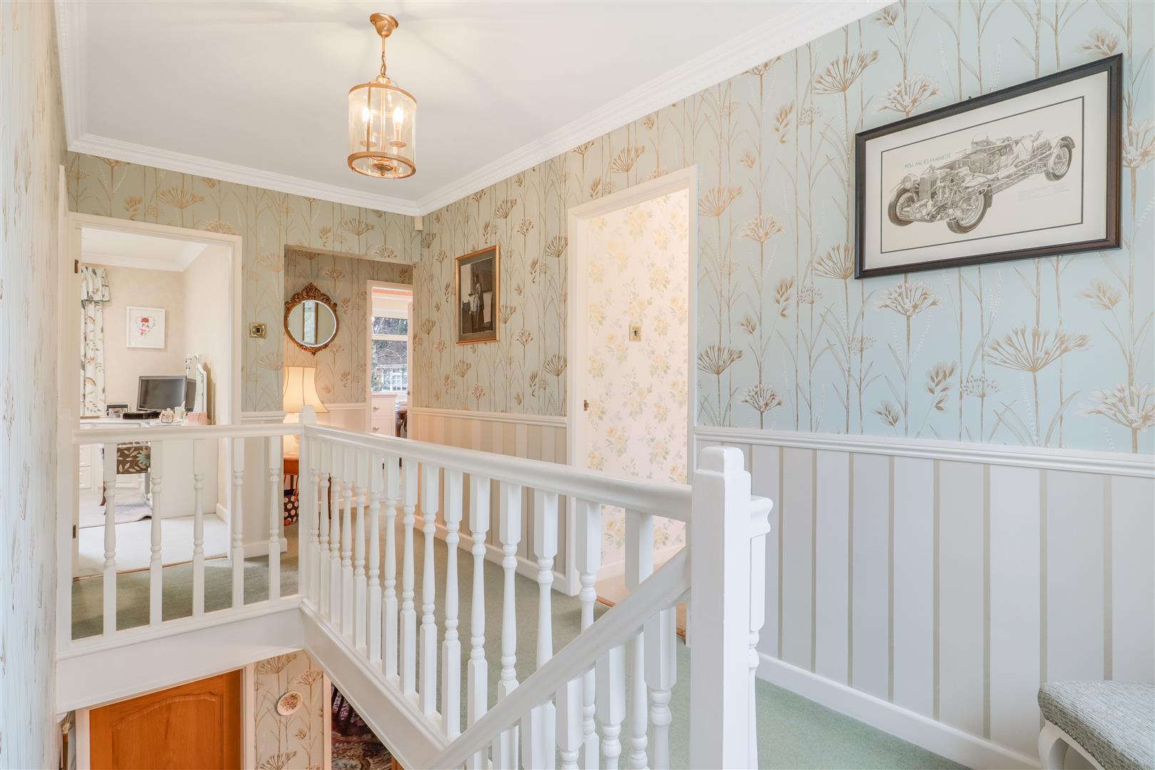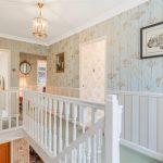 With a wooden-framed window at the front, there is a matching white wood bannister rail and spindles, a ceiling light, coving, and a door leading to...