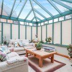 Features ceramic tiled flooring, an attractive hybrid wood conservatory with a pitched glass roof and an automatic Velux window. It includes two electric heaters, fitted blinds, French doors leading to the rear garden, and two wall lights.