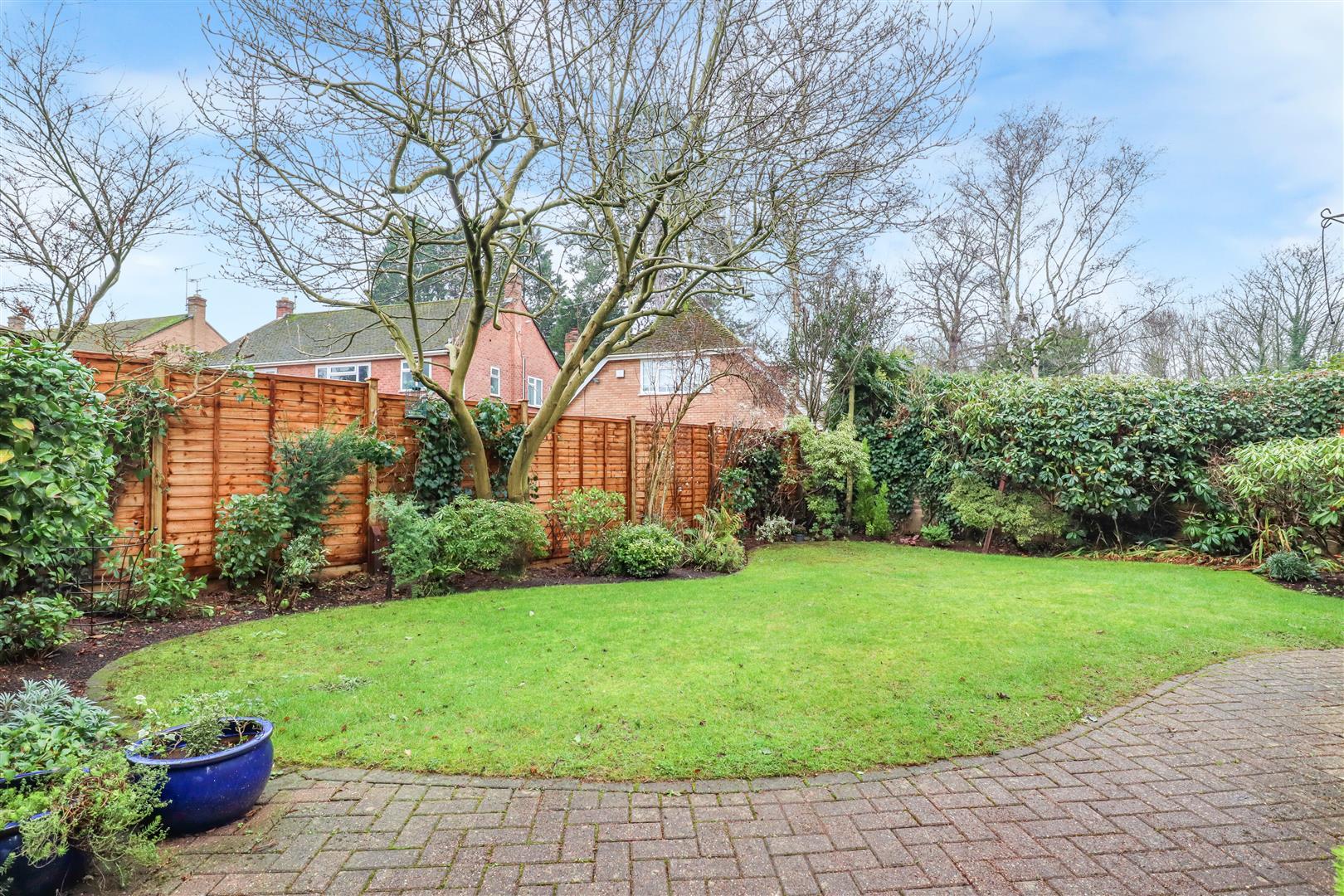 The attractive rear garden is fully enclosed by perimeter fencing and features a manageable size. It includes a central lawn surrounded by well-stocked borders with magnolia and rhododendron shrubs. There is a block-paved patio and pathway, along with side access gates on both sides. Additionally, there is an integral garden store and a cupboard housing a new Baxi boiler that services the hot water and central heating.