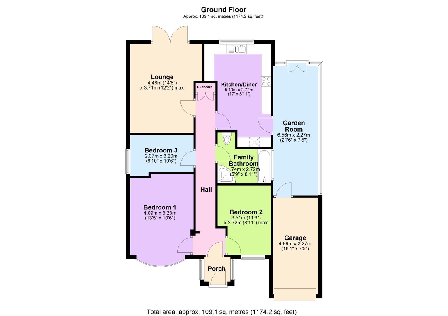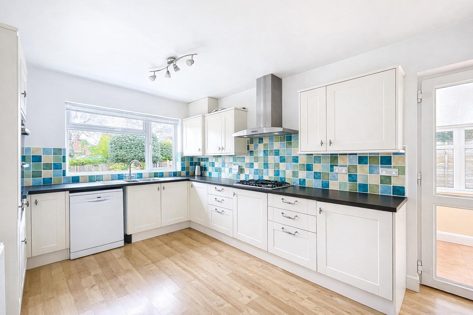 Further features include tiled splashbacks, a radiator and contemporary laminate flooring, with a door leading through to the garden room.