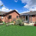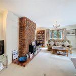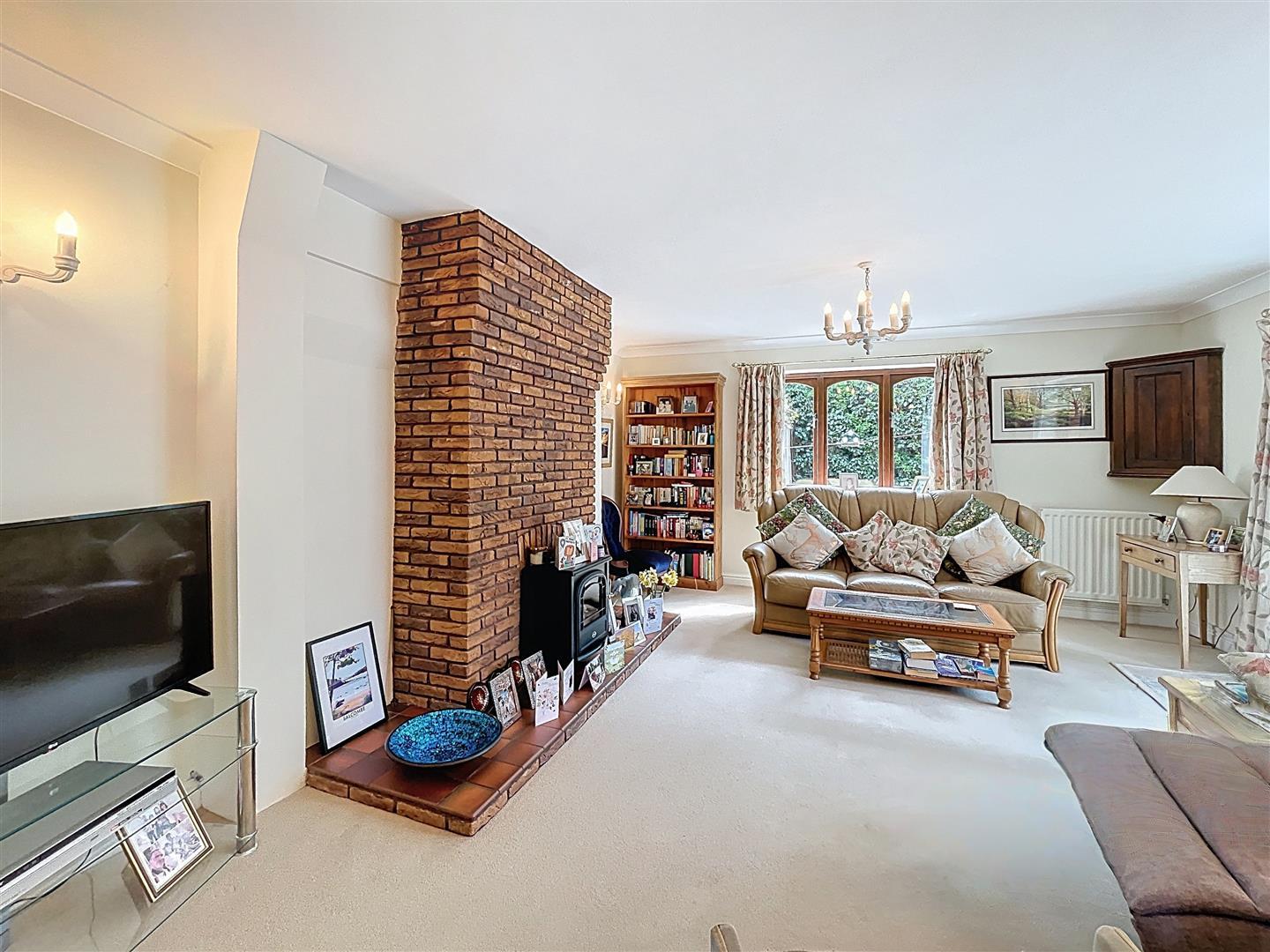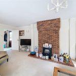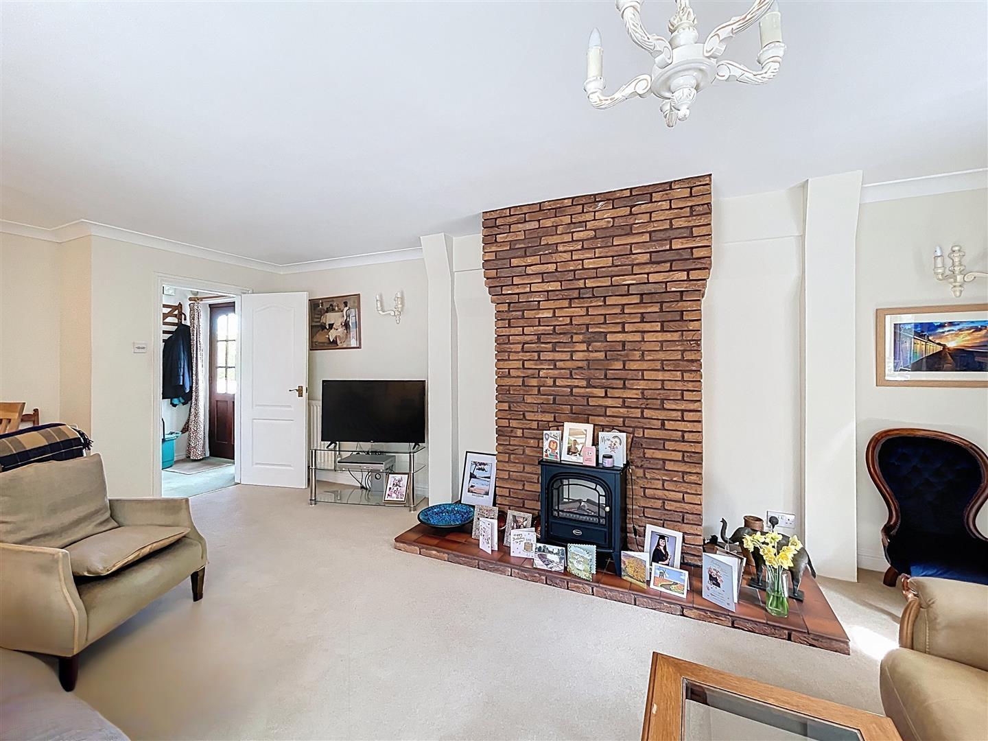 Featuring two radiators and a window to the rear, the room also has a brick chimney and a quarry-tiled hearth. There is a TV point and a dining area with space for a large table, with patio doors leading into the garden.