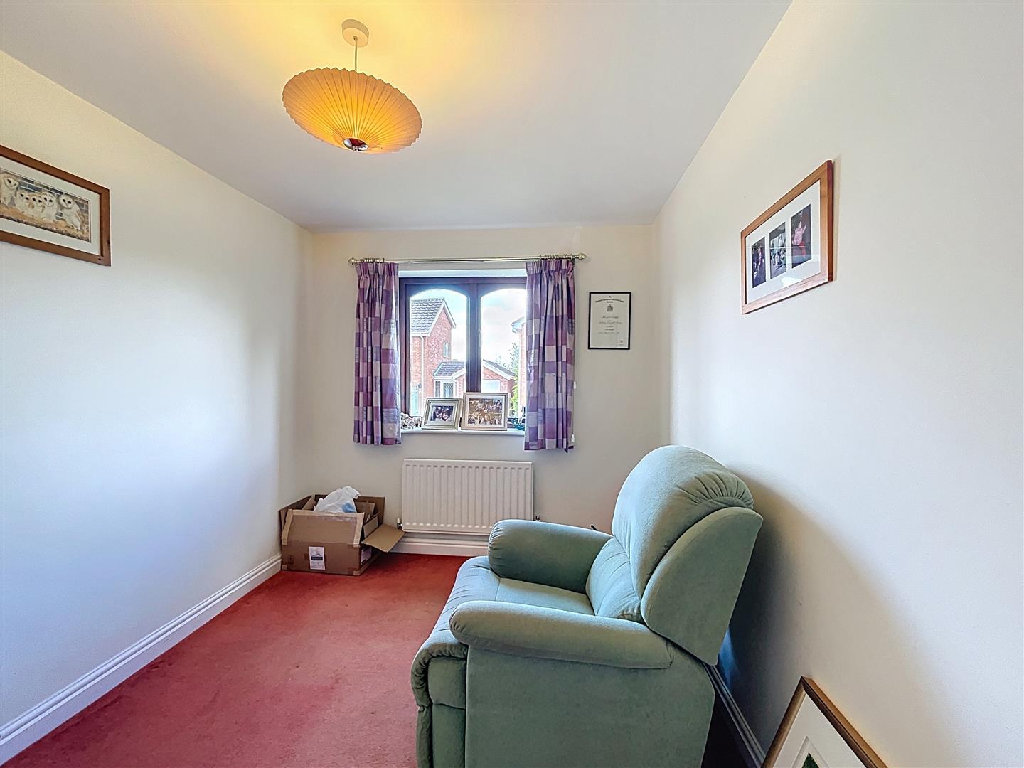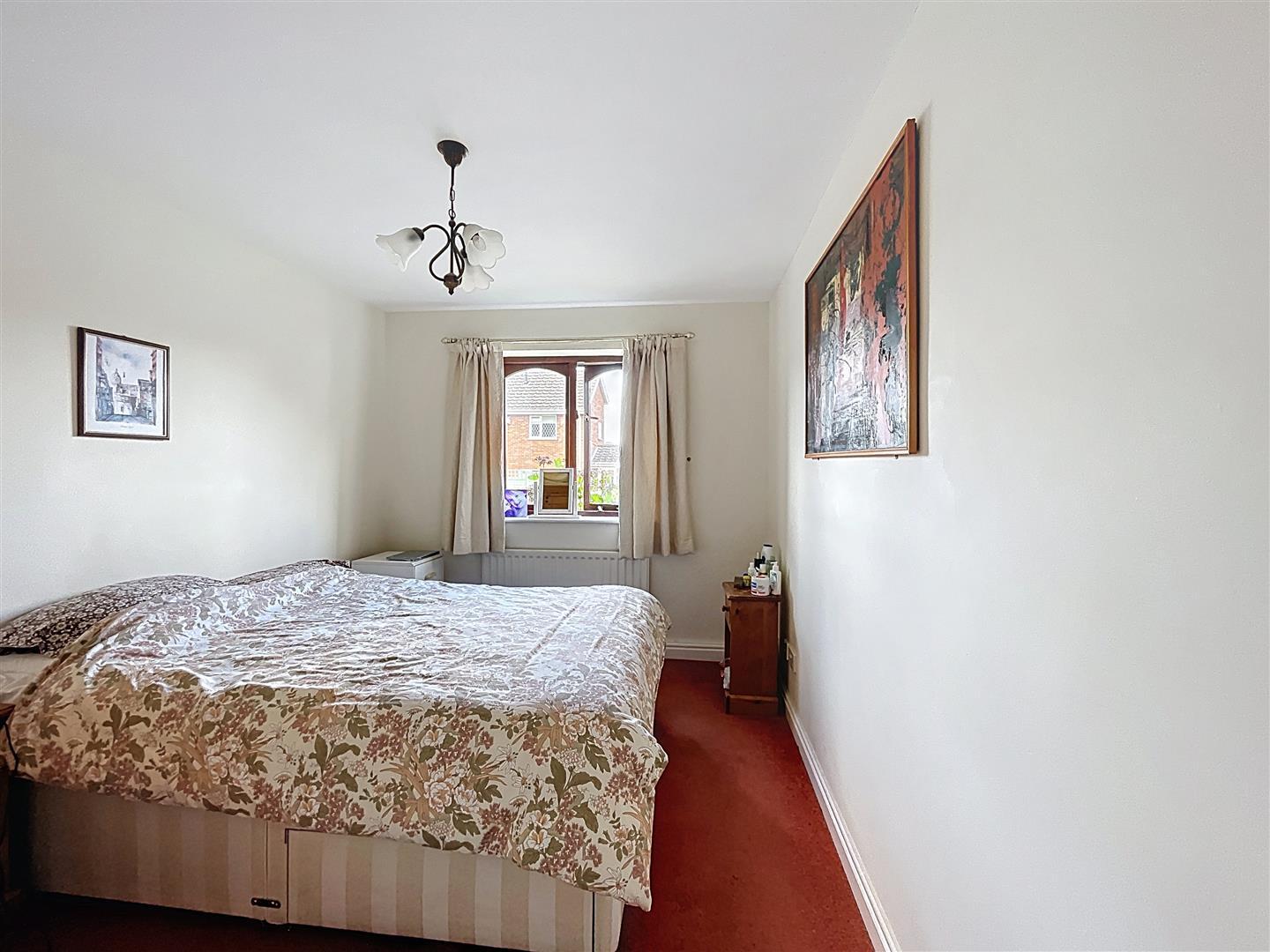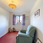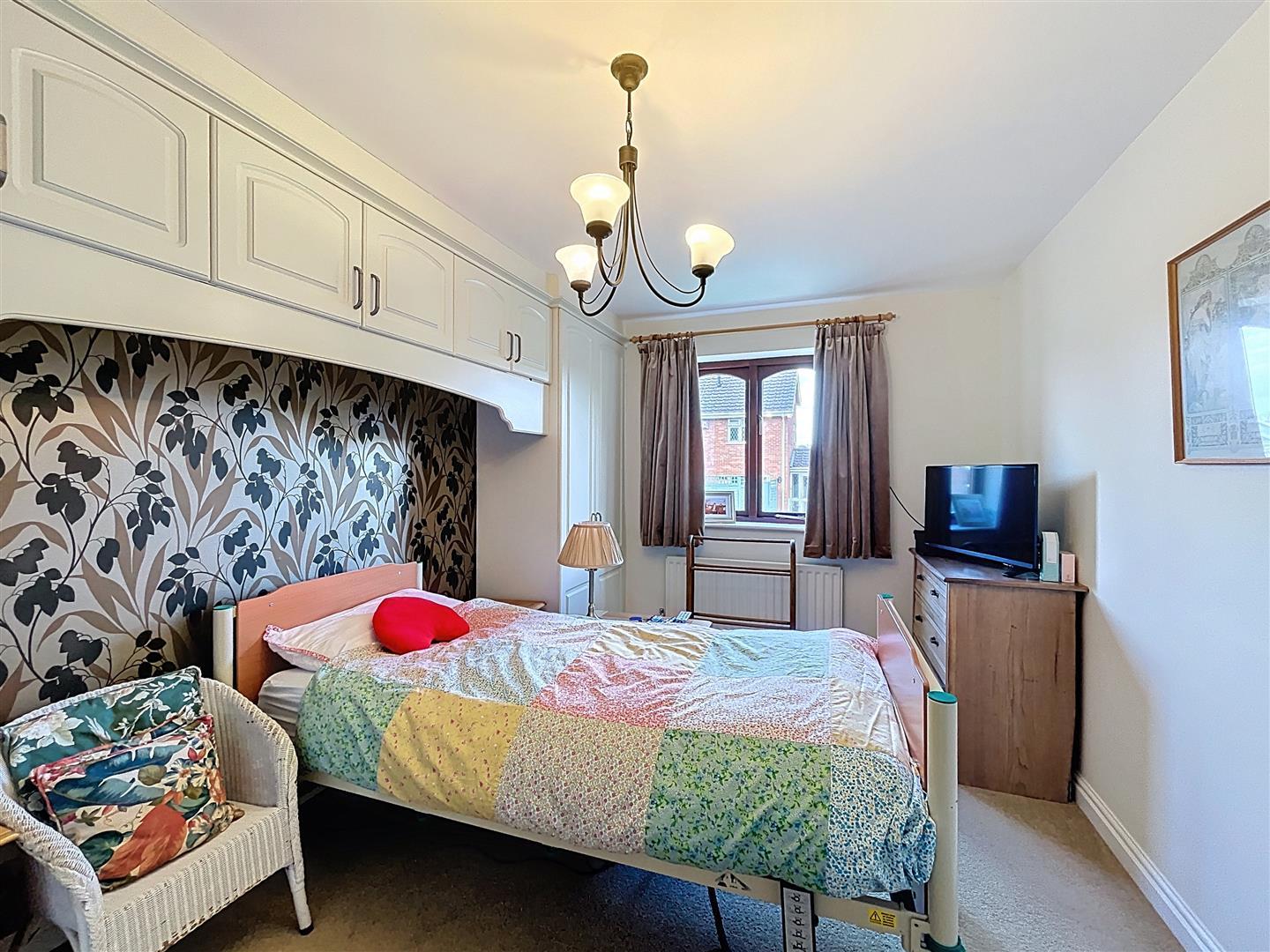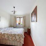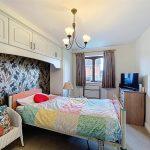 Featuring windows at both the front and rear, this bedroom includes a range of built-in furniture with matching wardrobes and overhead storage, along with a door to