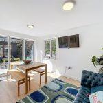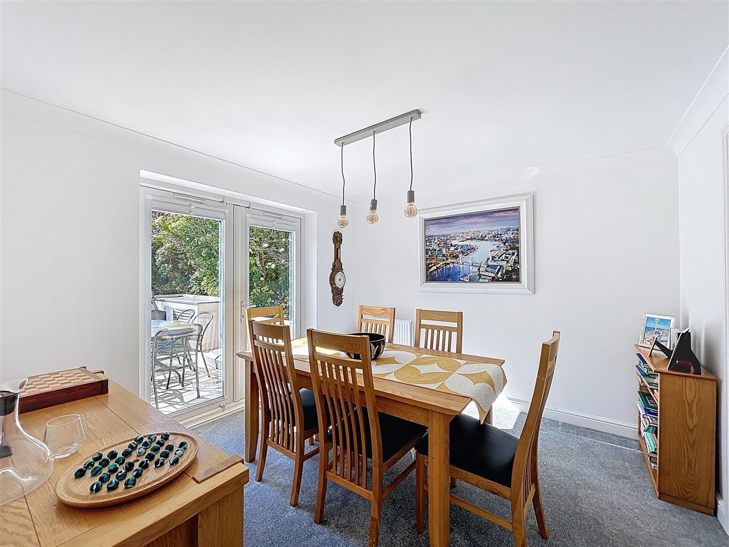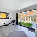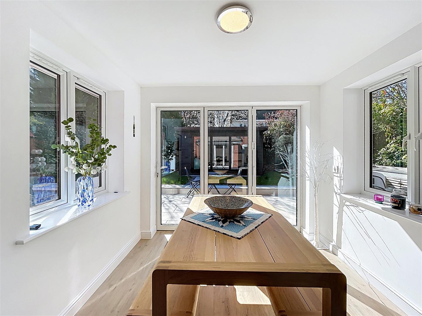 The kitchen opens seamlessly into the breakfast area, which has windows and bi-folding doors leading onto the rear terrace and garden, along with a radiator.