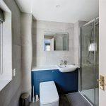 Having a double shower cubicle with thermostatic shower, vanity wash hand basin and a Japanese toilet. Chrome heated towel rail and a frosted window.