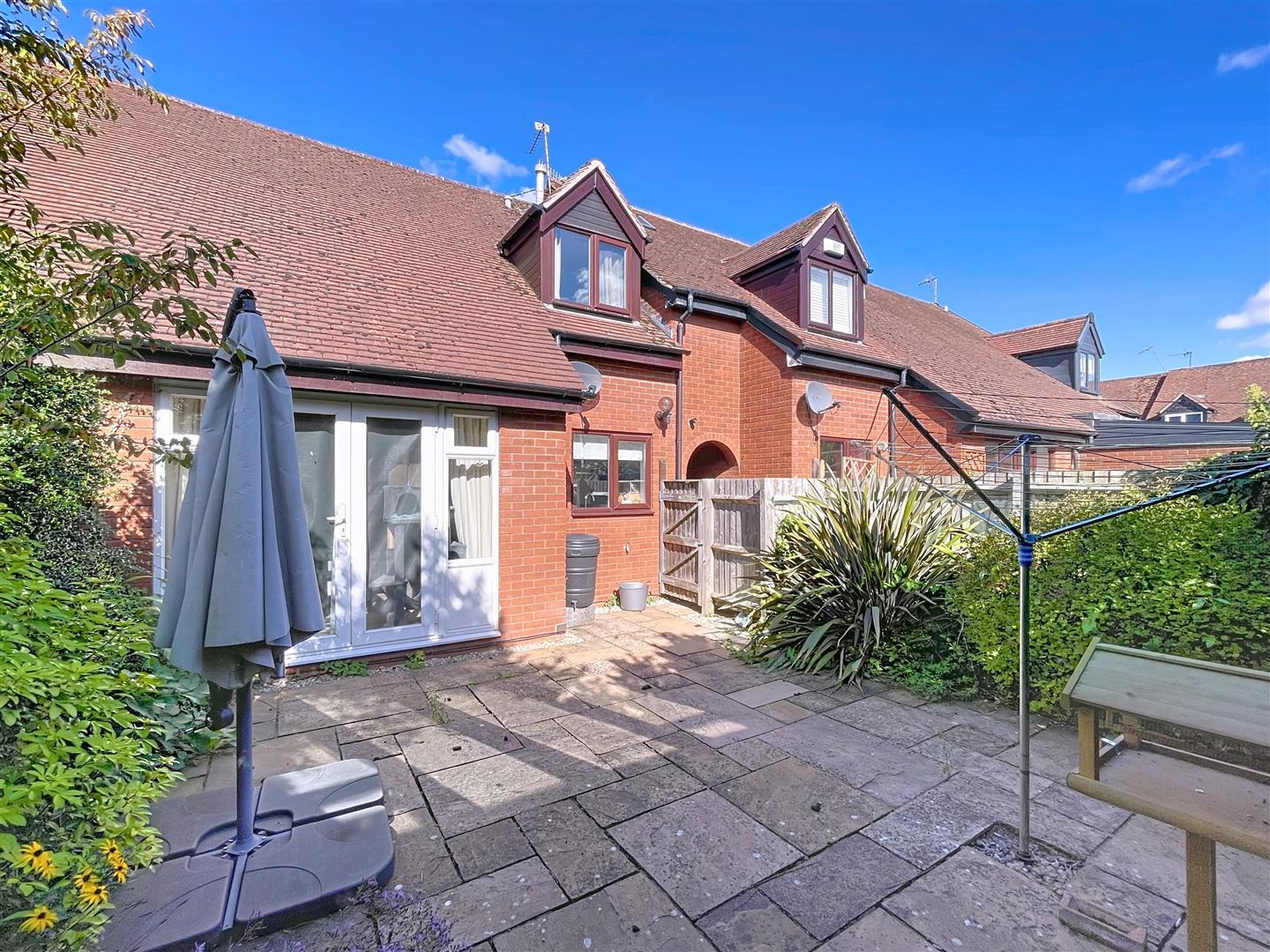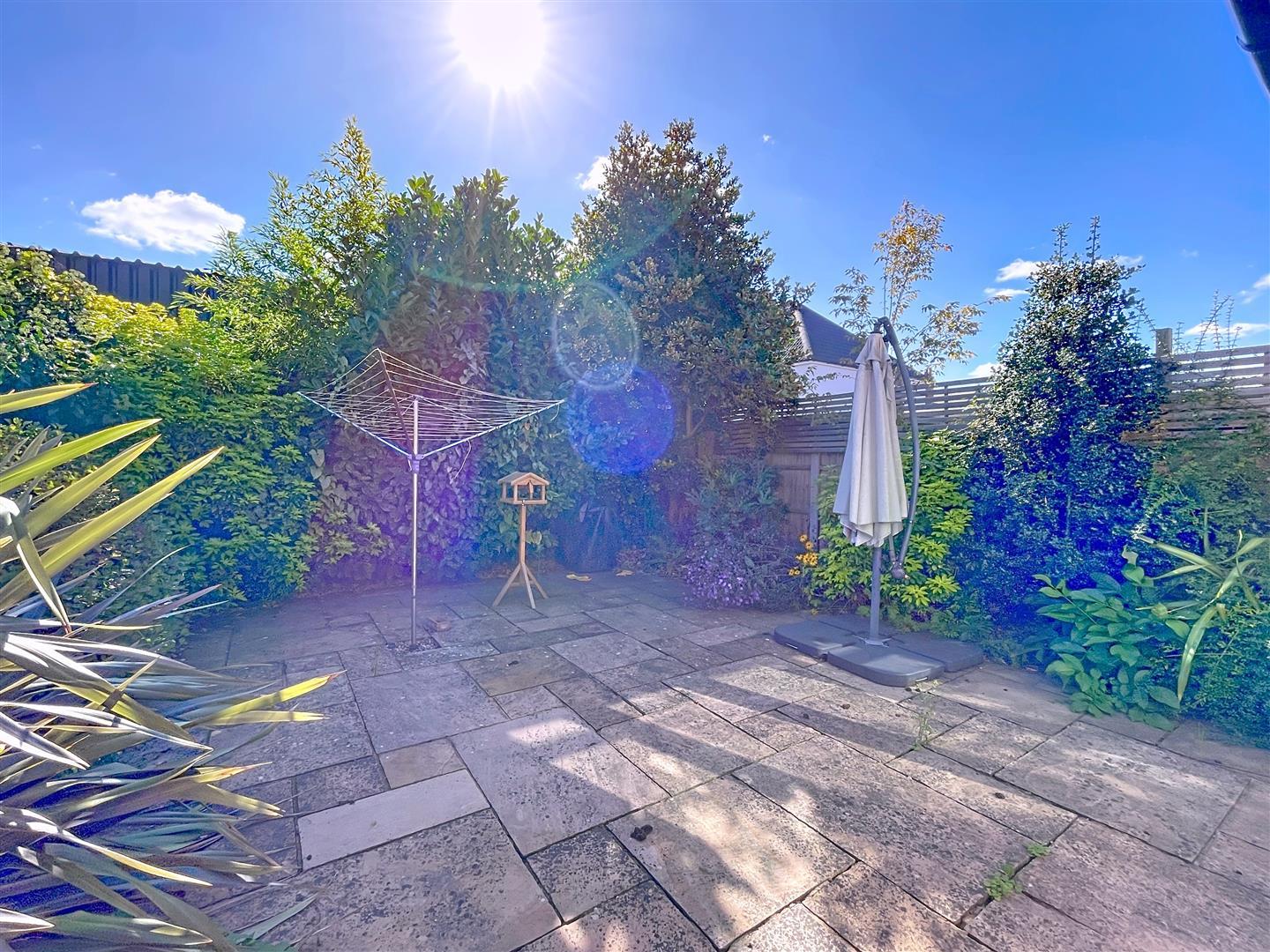 The paved courtyard is enclosed with panelled fencing and has several mature shrubs and trees. With outside tap and gated side pedestrian access through a timber gate