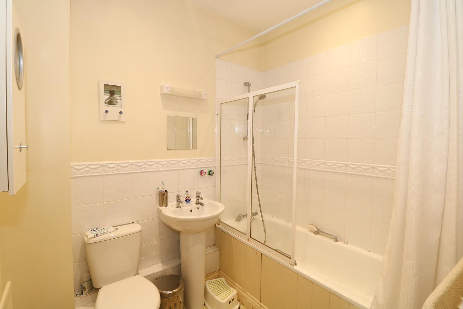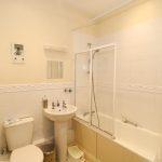 Fitted with a white suite that comprises a panelled bath with mixer shower, pedestal wash hand basin and a close coupled wc. Tiling to splashbacks, radiator and medicine cabinet.