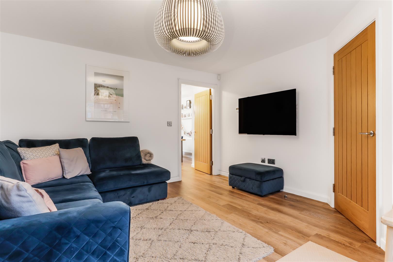 Featuring Karndean flooring, a radiator and a window at the front, along with a TV point and a ceiling light, there is also a door leading to the
