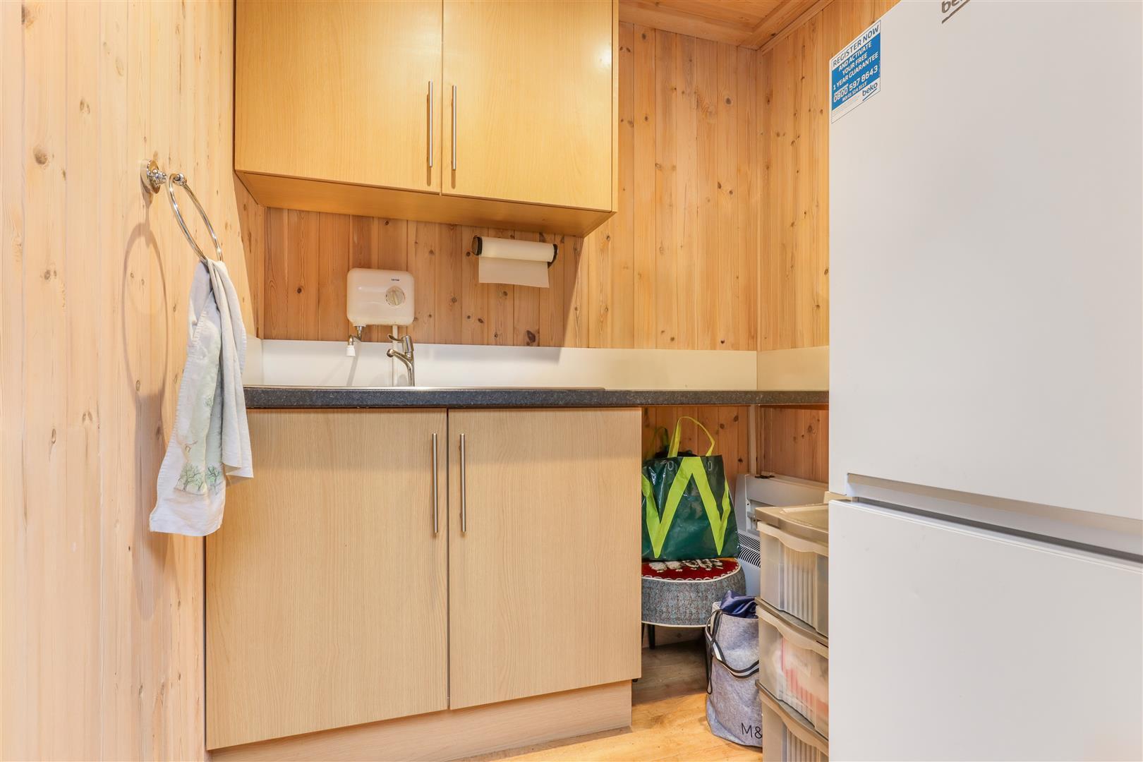South facing low maintenance courtyard garden with attractive views over the Church, laid with stone paving. Timber constructed kitchenette complementing the main home with led spotlights, base units, electric heating. Separate WC containing LED spotlights, electric triton wash hand basin, heated towel rail and low level WC. With courtesy lighting and outside patio heating with outside electric sockets and awning.