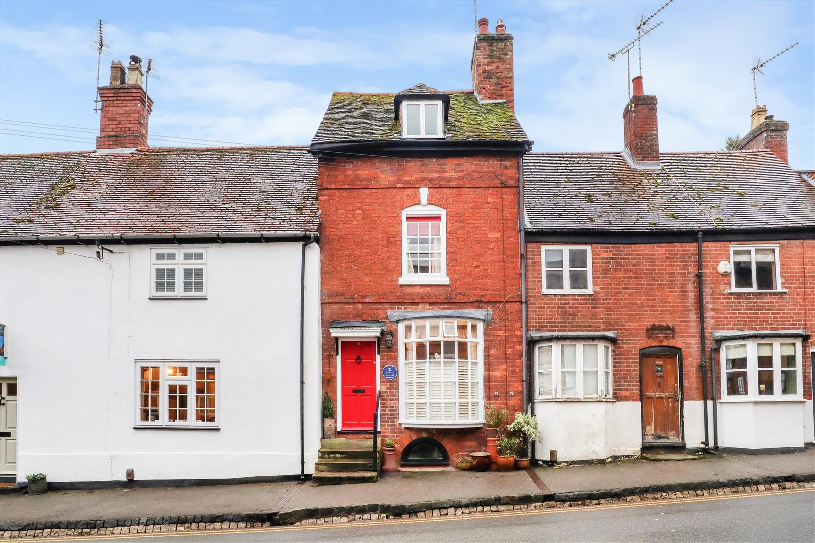A sash window to the fore with views over the Church of St. Nicholas, radiator, storage cupboard housing the Worcestershire Bosch boiler with further shelving.