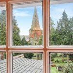 With views of the church through a Georgian style glazed panel door, wall lights, plantation shutters and door down to