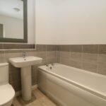 Fitted with panelled bath, low level W/C, wash hand basin, fully tiled bath area and partly tiled walls to rest of the bathroom inset ceiling spot-lights and extractor fan.