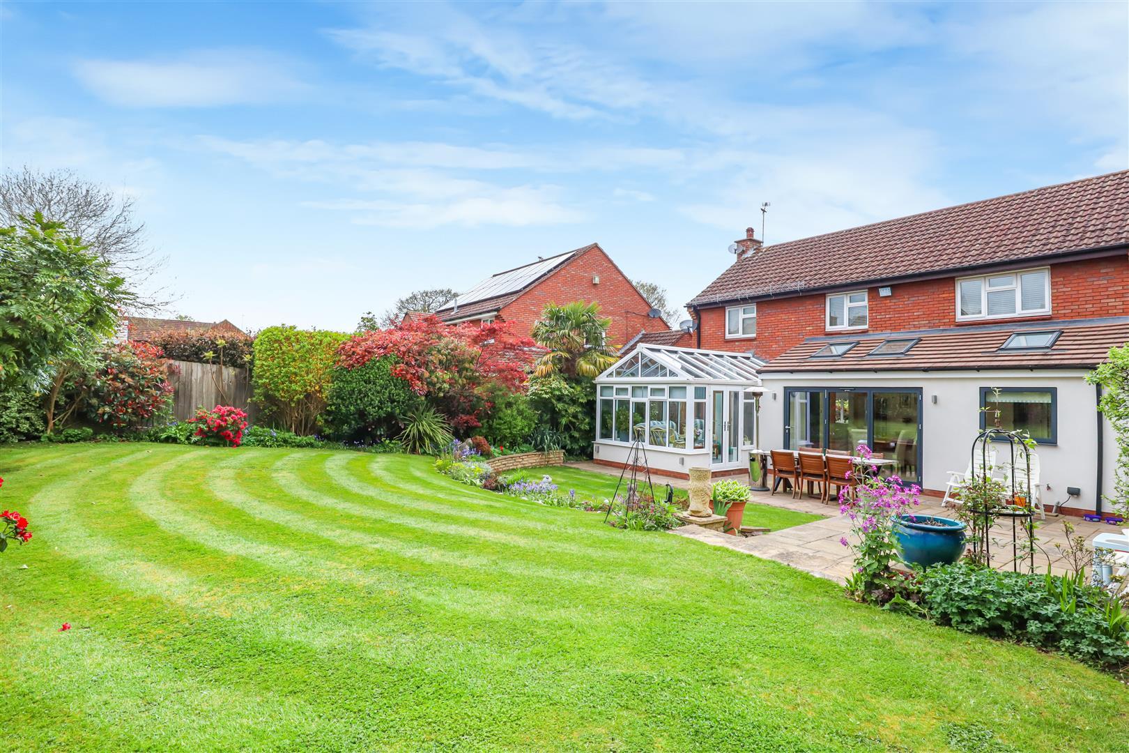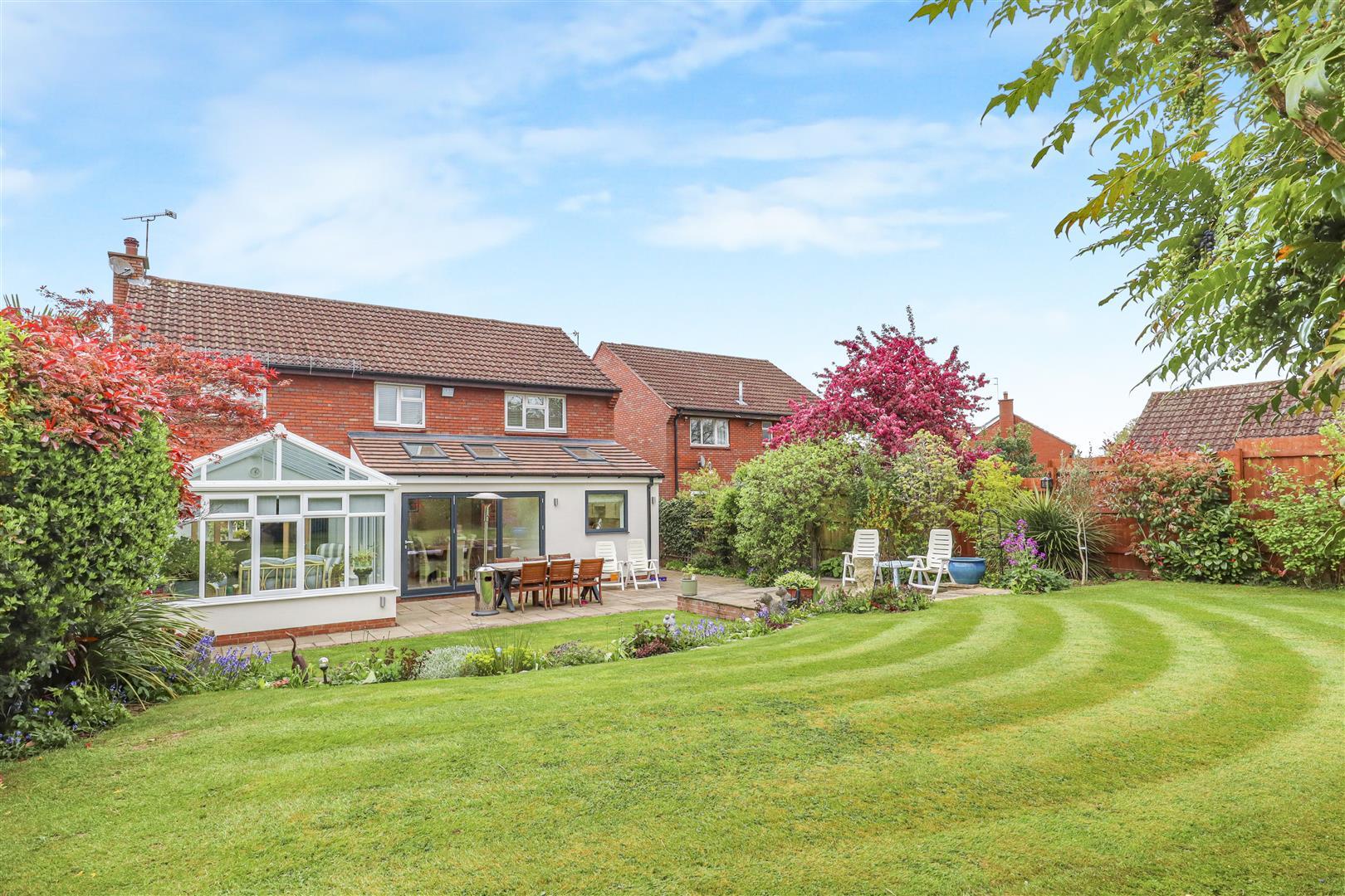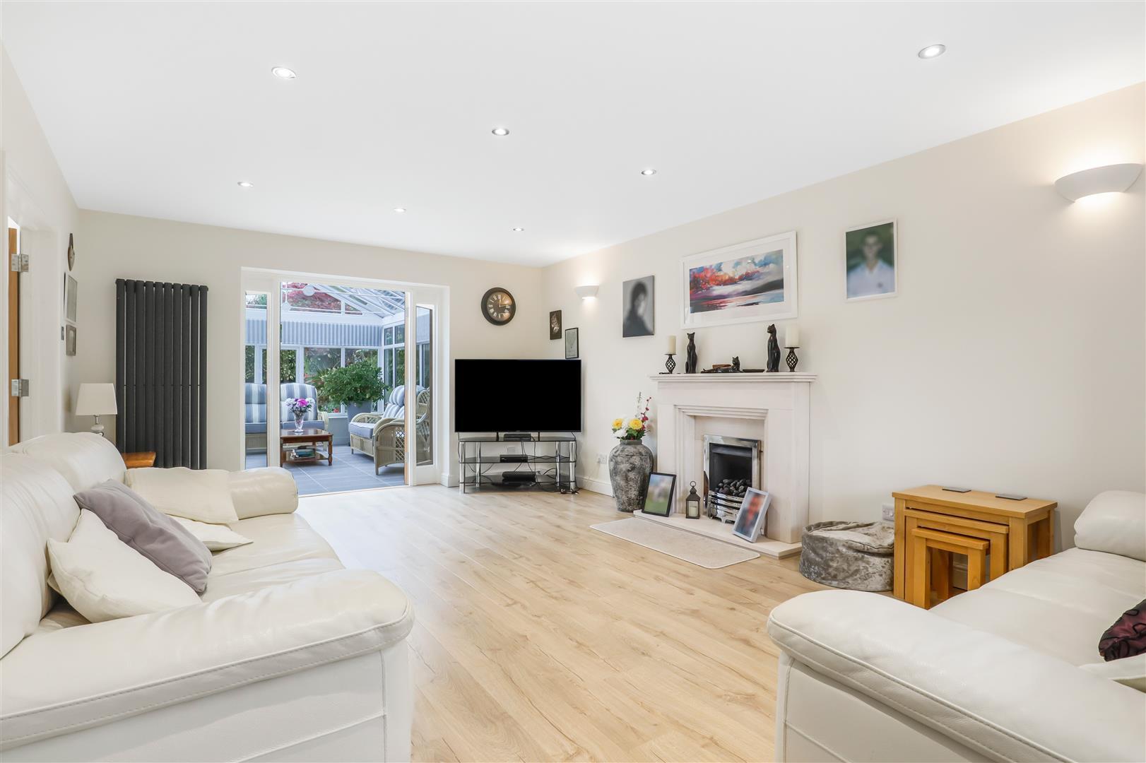 Being set well back from the road, approached via a formal lawn and a block paved driveway leading to an integral double garage. Internally, the ground floor is finished with laminate flooring and is centred around a welcoming hallway with cloakroom. There is a generous through lounge featuring a fireplace and flowing into a quality conservatory, creating an excellent space for both everyday living and entertaining. The kitchen and dining room have been extended and now benefit from impressive vaulted ceilings, adding both light and a real sense of space.
