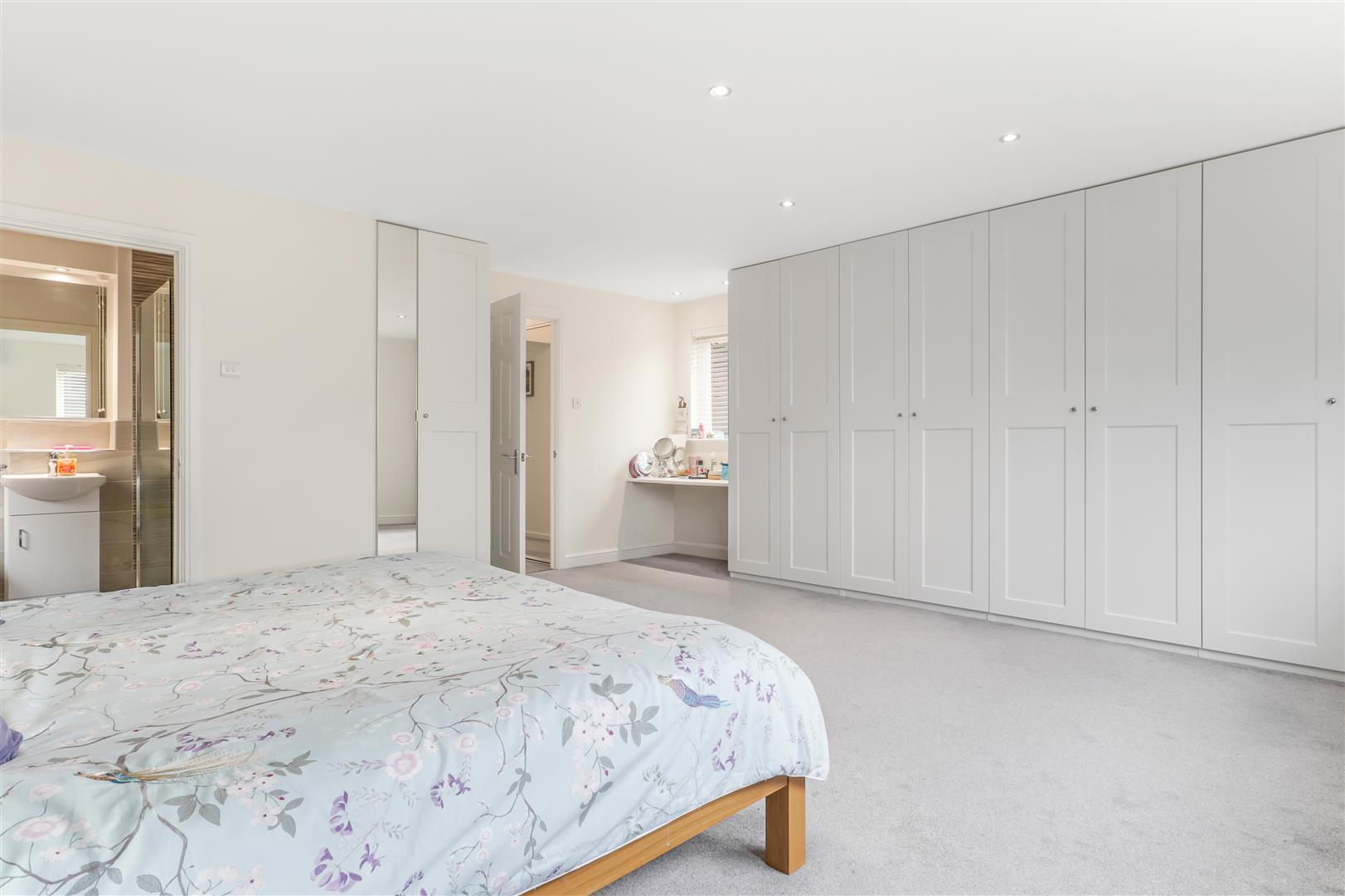 Window to the fore with a radiator beneath. A bank of stylish fitted wardrobe’s to one wall and a door into the en-suite.