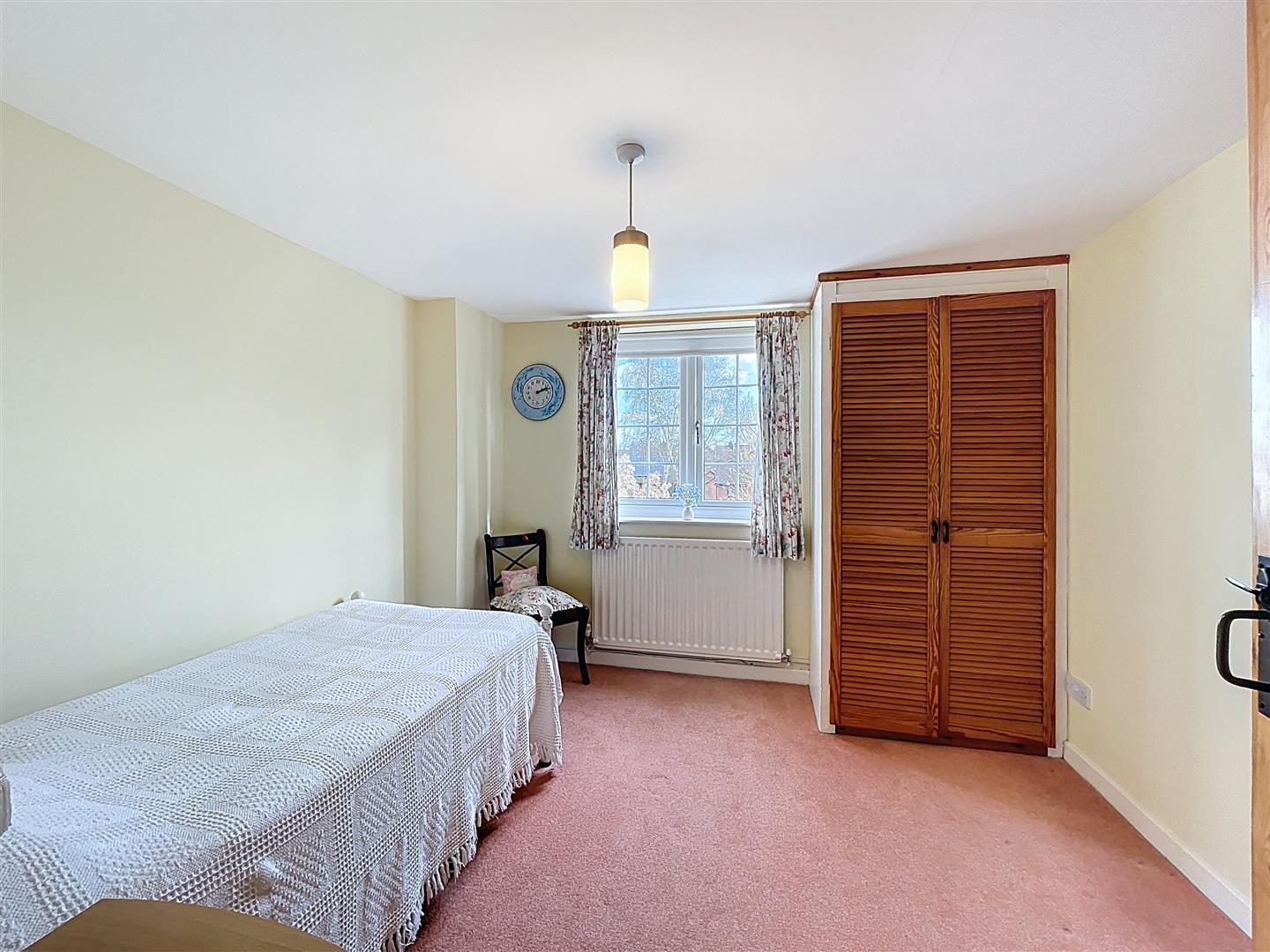 With window to the fore overlooking rear garden with central ceiling light, radiator, fitted louvre wardrobes with hanging rail and shelving.