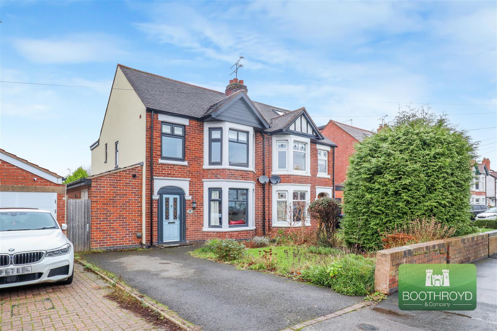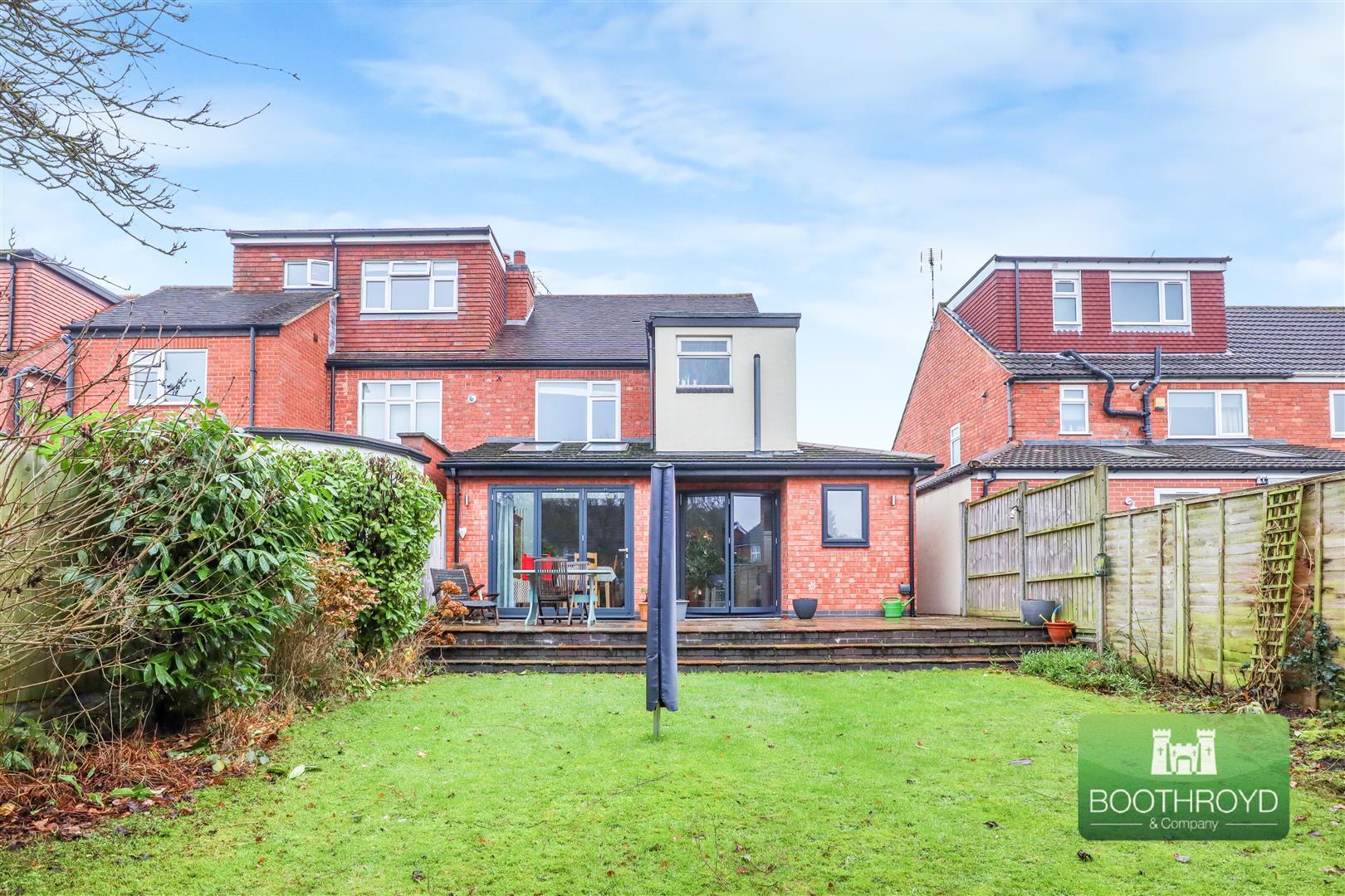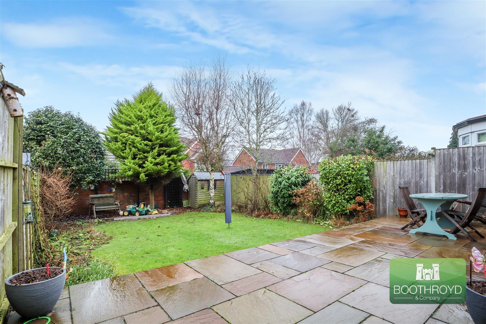 To the front of the property is a dwarf brick wall, inset lawned fore garden with screening shrubs and plants, tarmacadam driveway with parking for two cars.