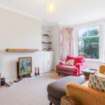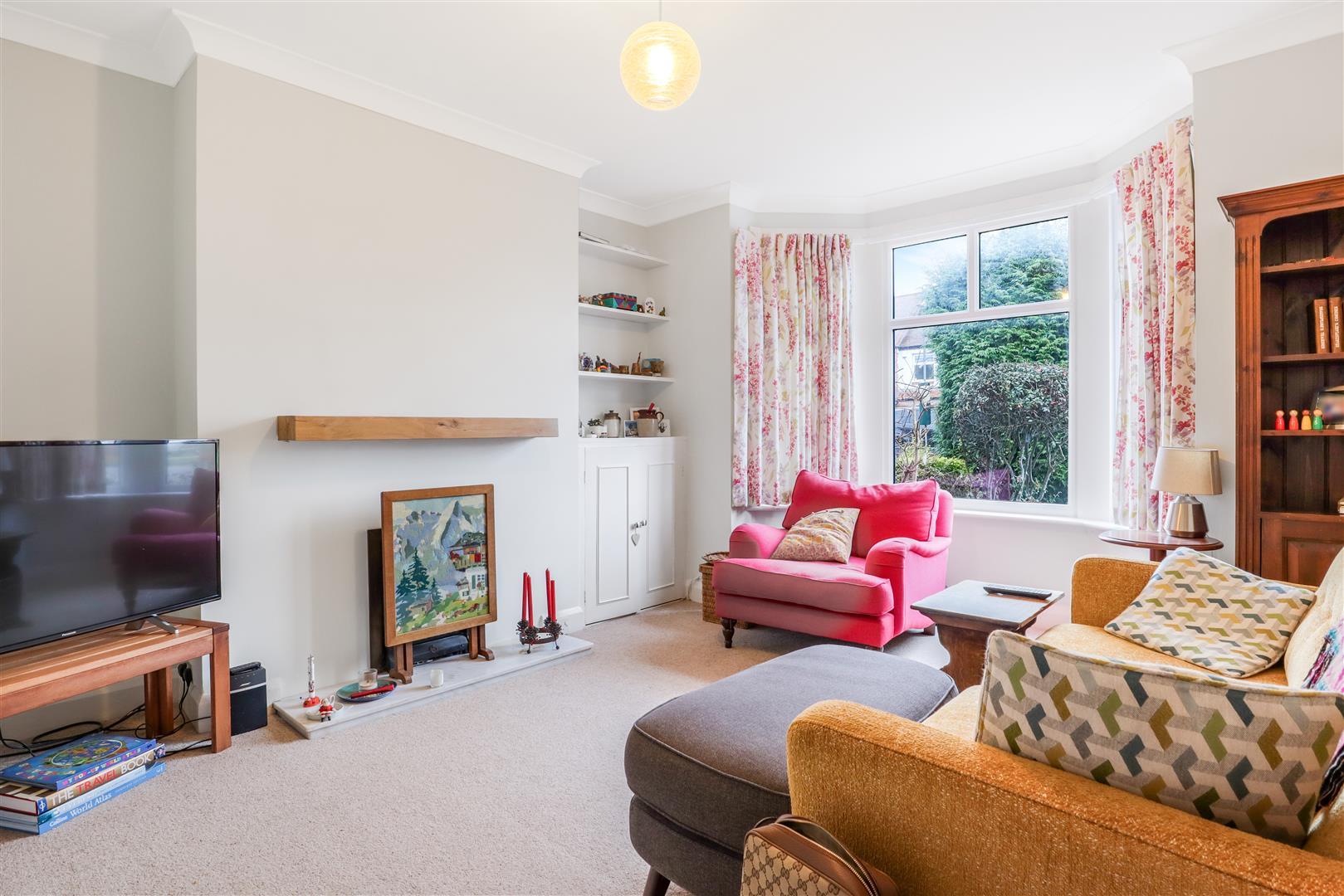 With feature walk-in bay window, living flame effect coal gas fire with floating oak mantle and marble composite hearth, ceiling light, coving.