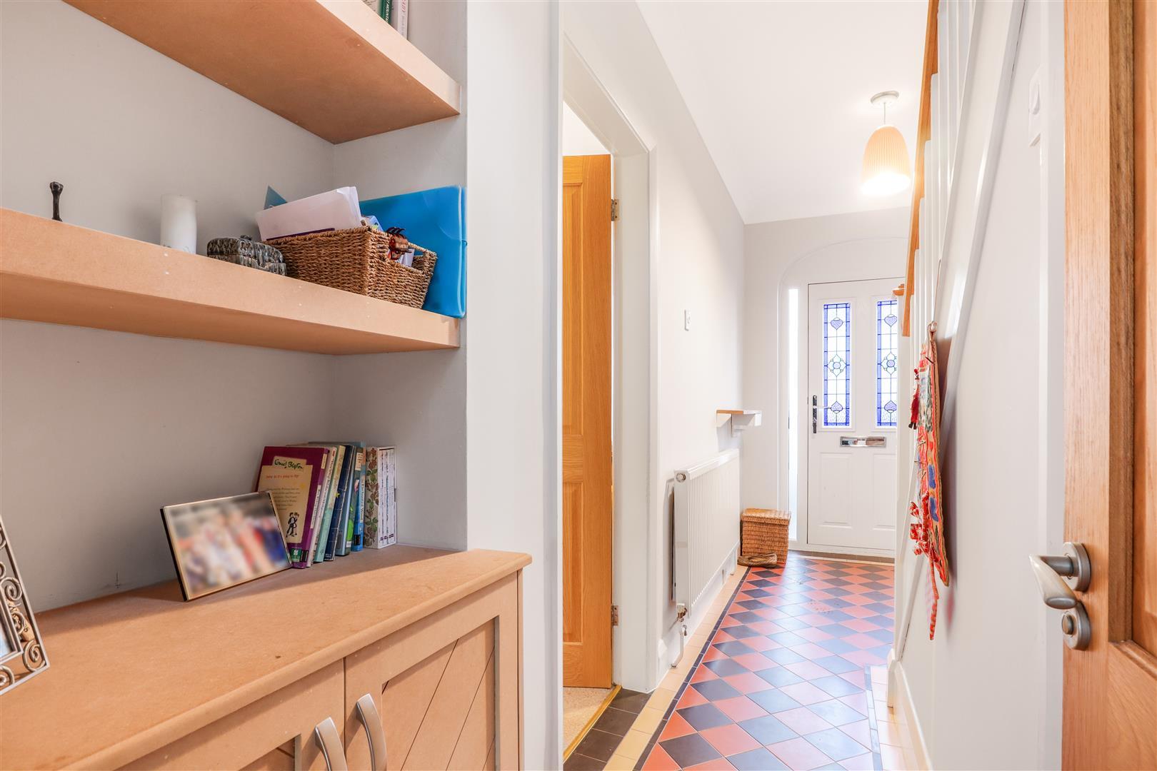 With Minton style quarry tiled flooring, ceiling light, coving, smoke alarm, radiator, useful built in storage cupboard with shelving, door to the