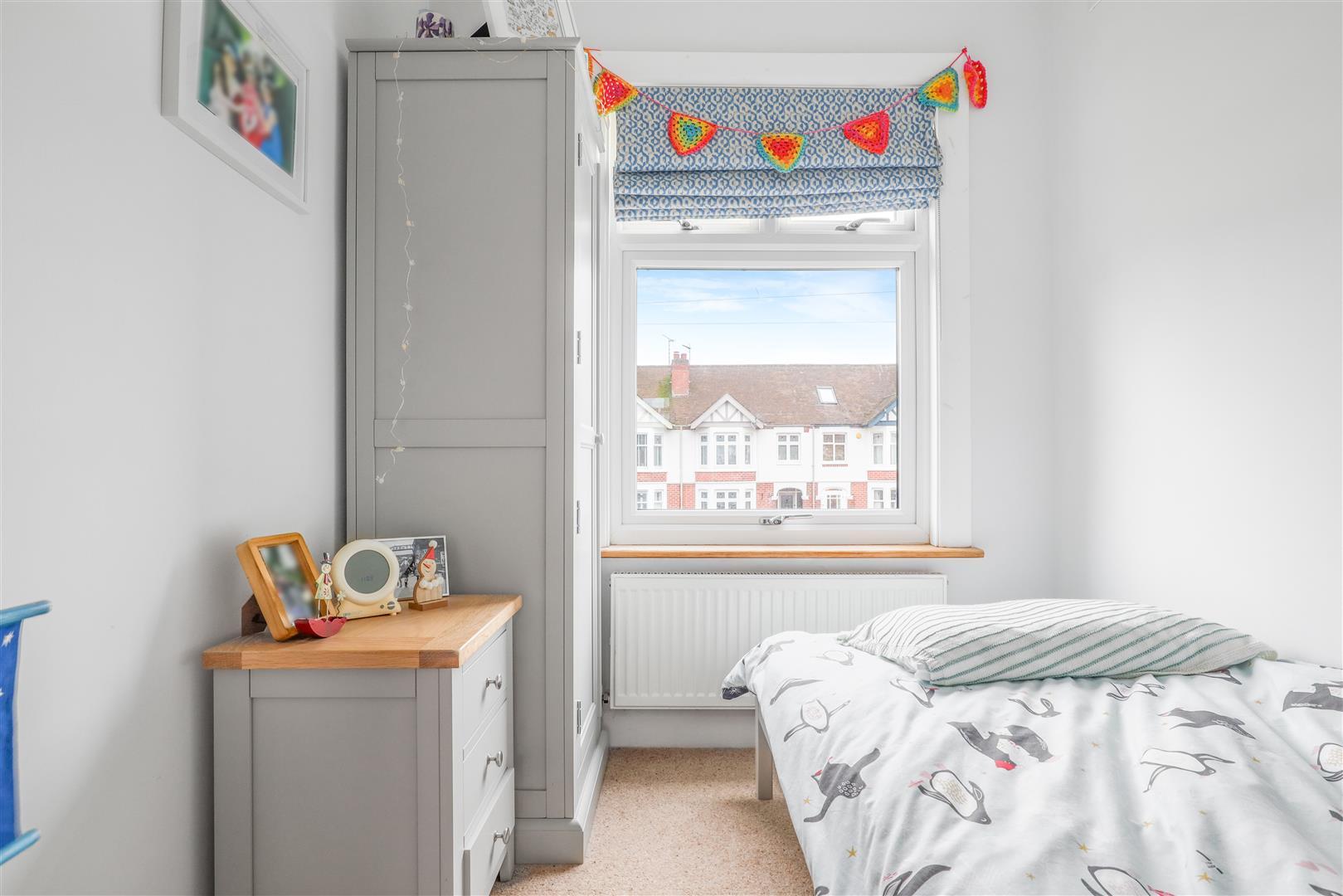 With walk-in double-glazed bay window to front, built in wardrobes either side of the chimney breast, radiator, ceiling light.