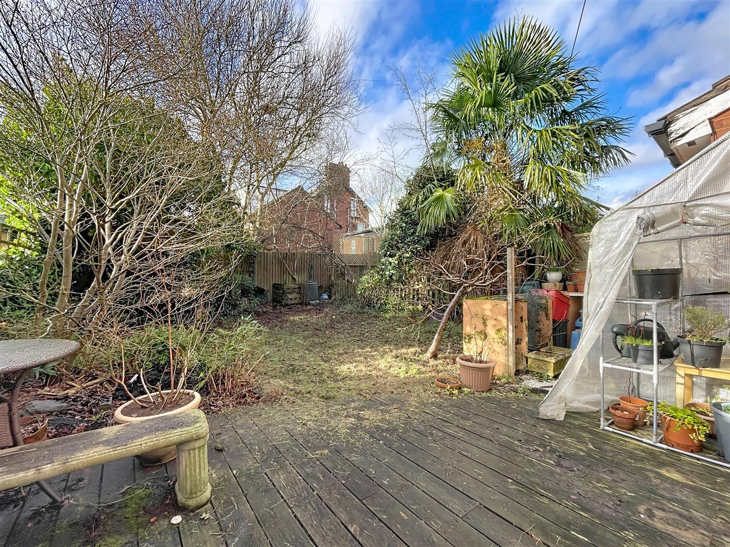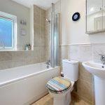 With opaque glazed window to rear, radiator, mains fed shower over paneled bath with complimentary ceramic tile splash back, pedestal wash hand basin with chrome mixer tap,