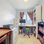 Central ceiling light, side window, storage cupboard with slatted shelving, access to insulated loft space, doors off to