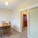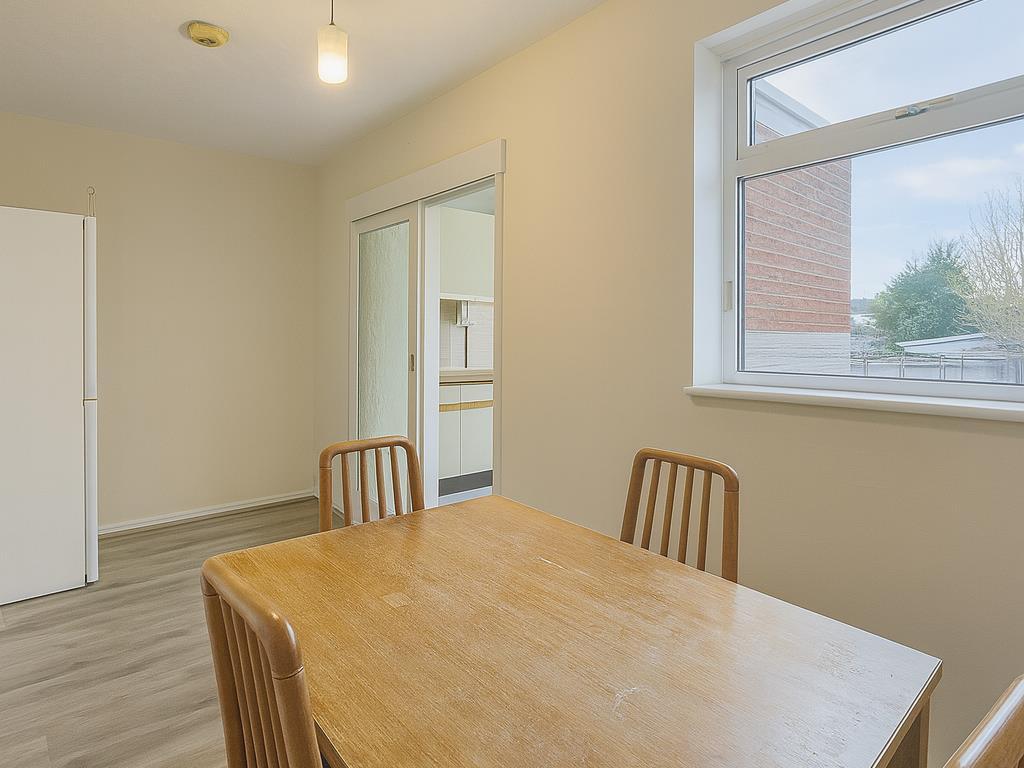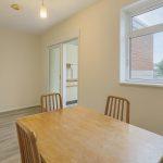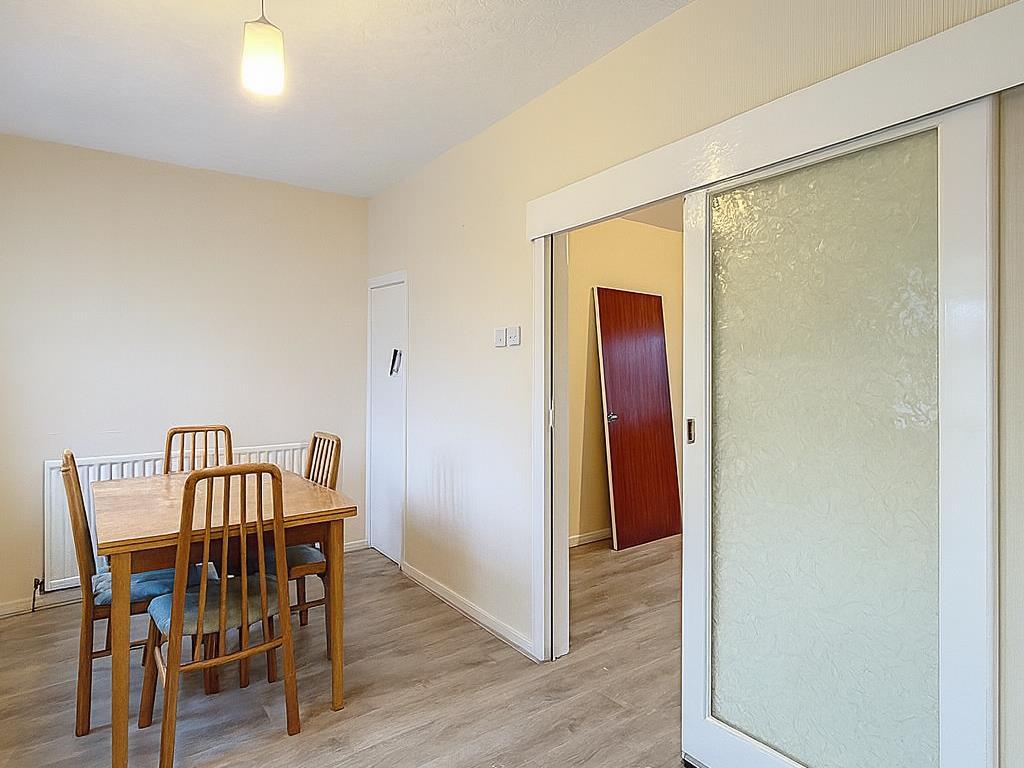 Through sliding opaque glazed door, with window to rear elevation, useful understairs storage cupboard with meters, dining table with four chairs and Fridge/Freezer.