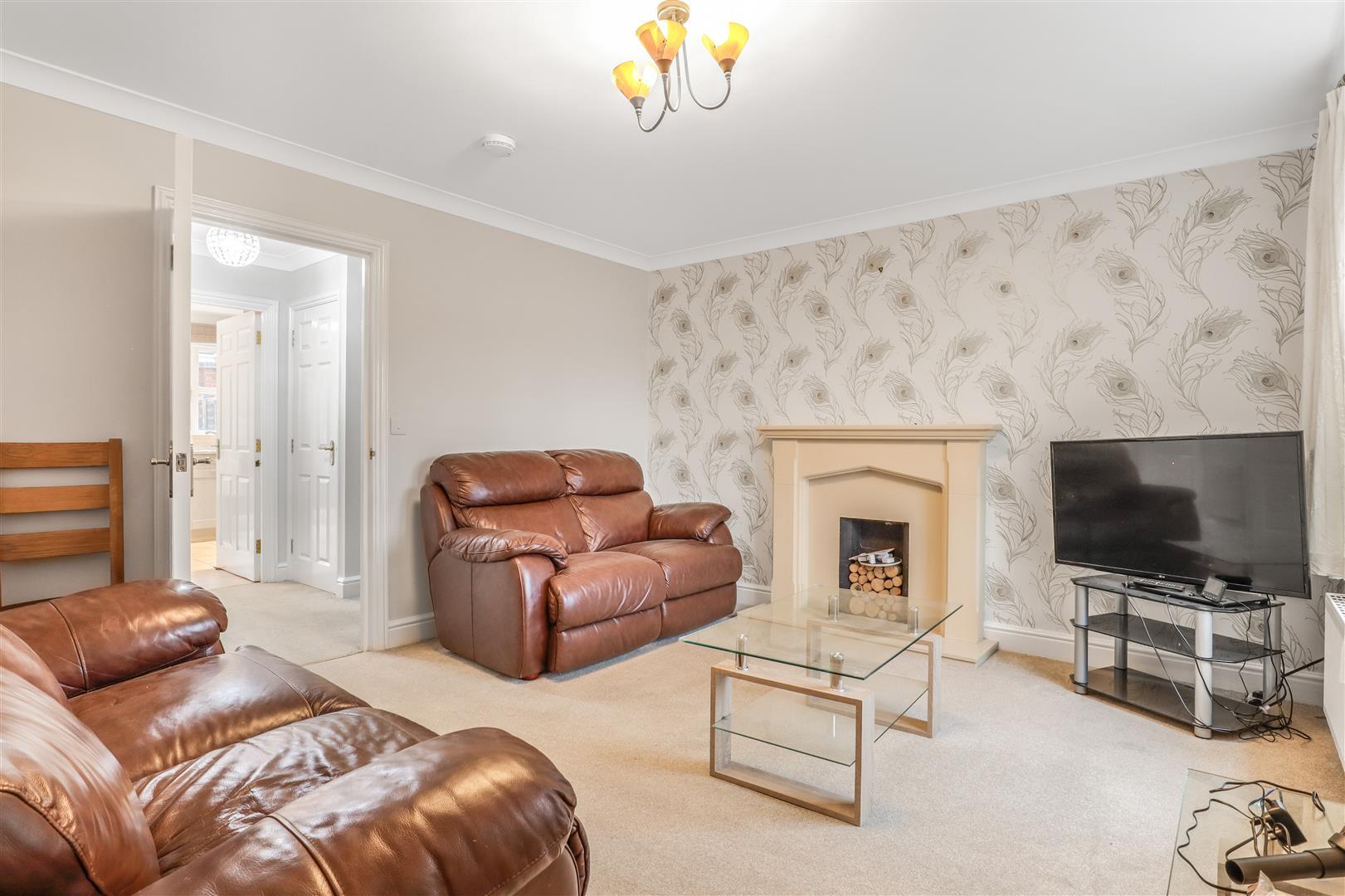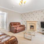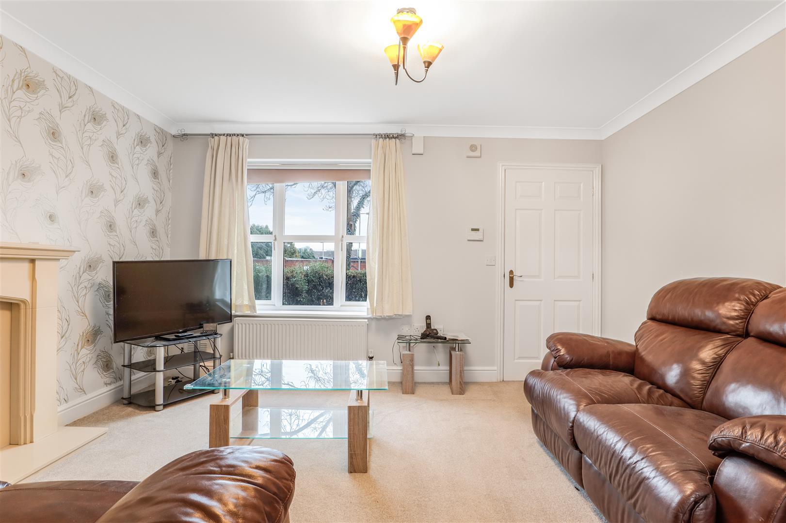 With Georgian style double glazed window to the fore with a radiator beneath, feature stone fireplace with matching hearth and mantel. Coving to ceiling and ceiling light. A door leads into the internal hallway.