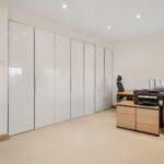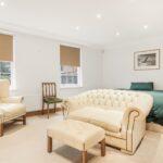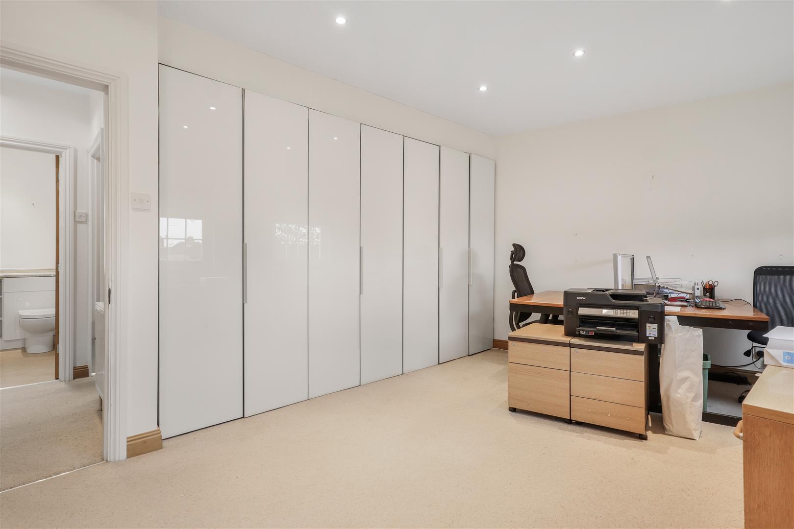 Recessed downlighters, radiator, three sealed unit double-glazed sash windows. Built in range of full-height wardrobes extending almost the width of one wall, providing ample hanging rail and storage space. Additional storage cupboard with slatted shelving.