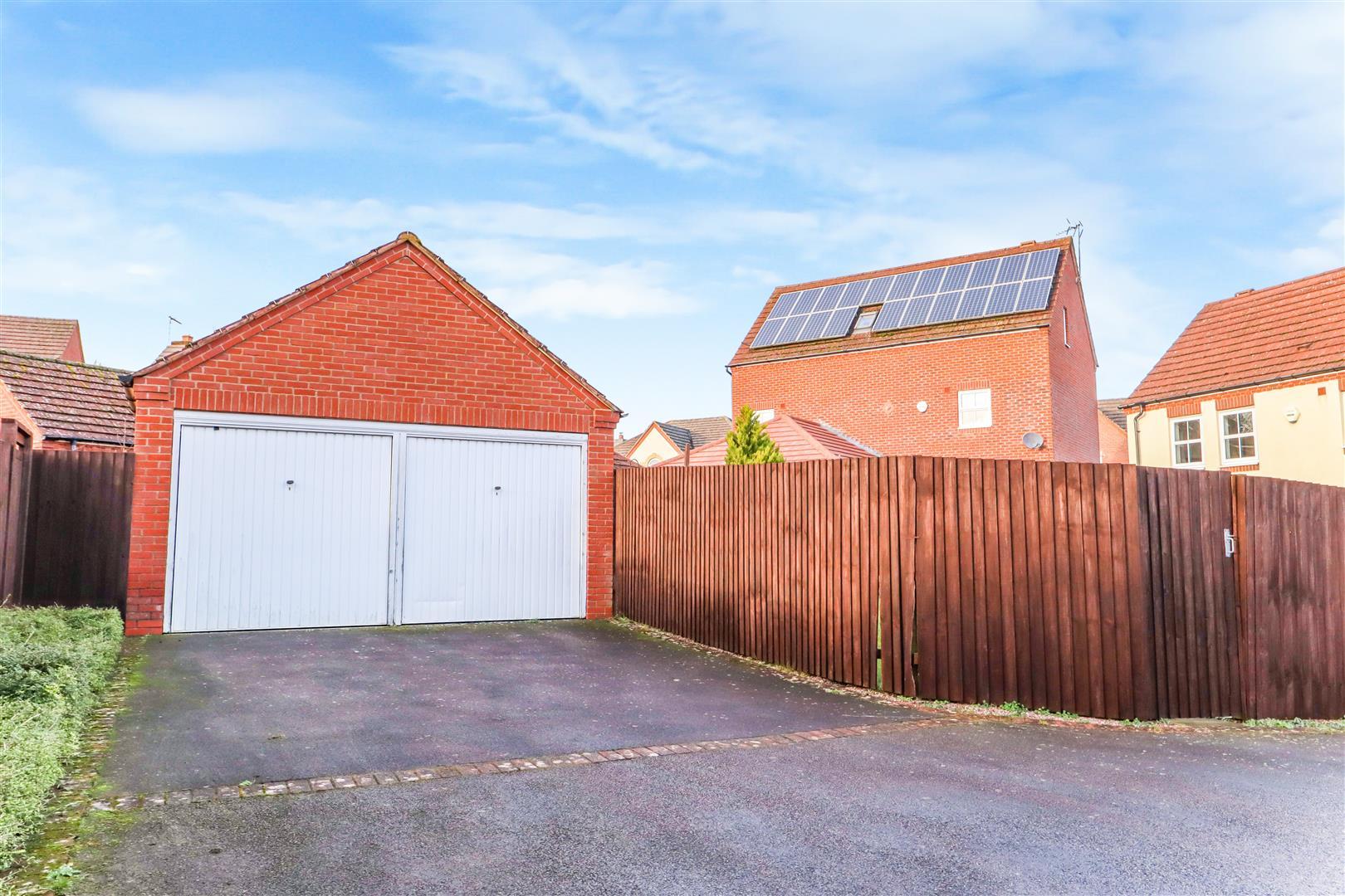 The property can be accessed through a shared tarmac driveway located on the side. It features an up-and-over door. Inside, there is a door that leads to section two, which is equipped with light and power. Additionally, a door opens out to the rear garden.