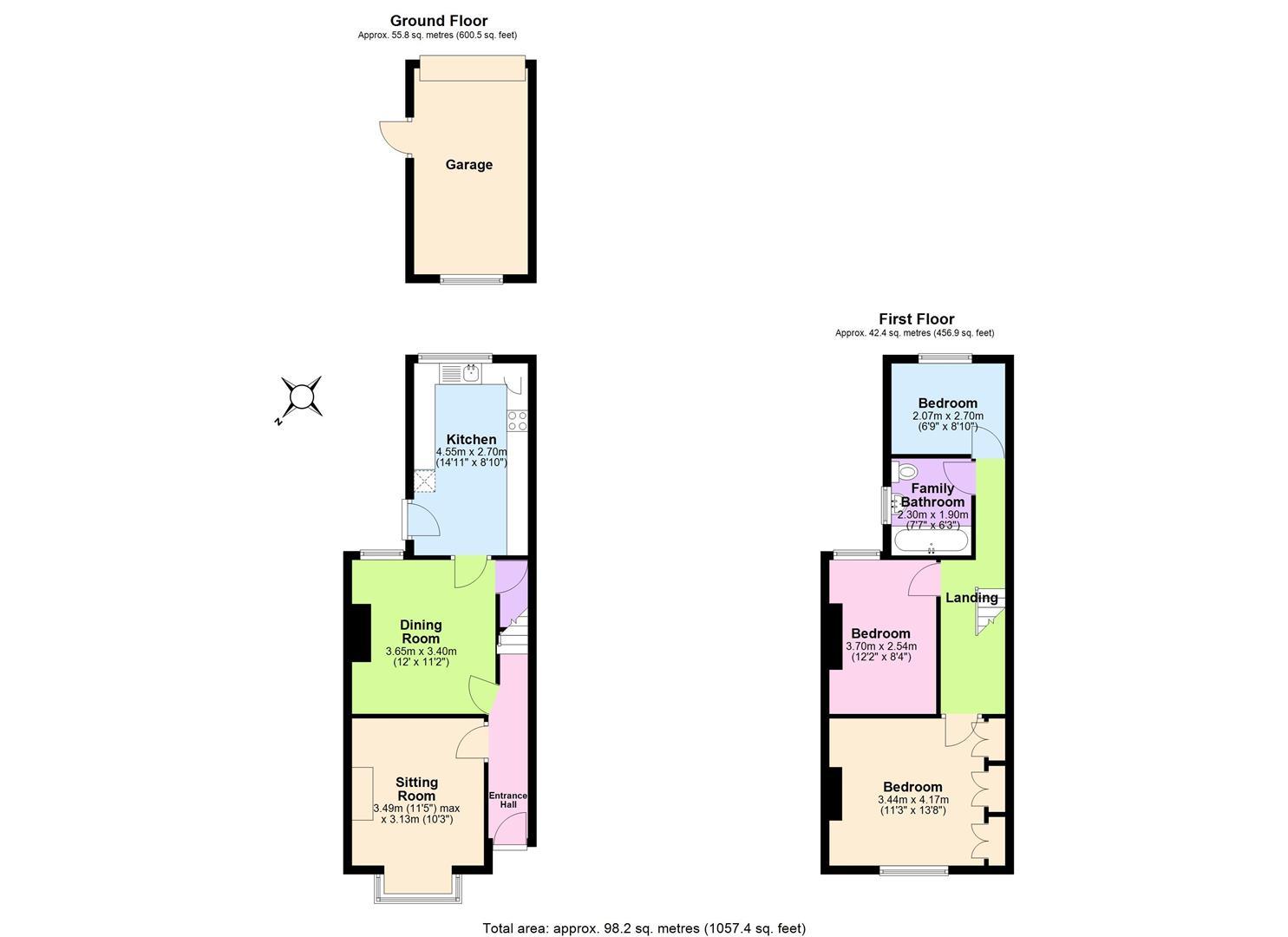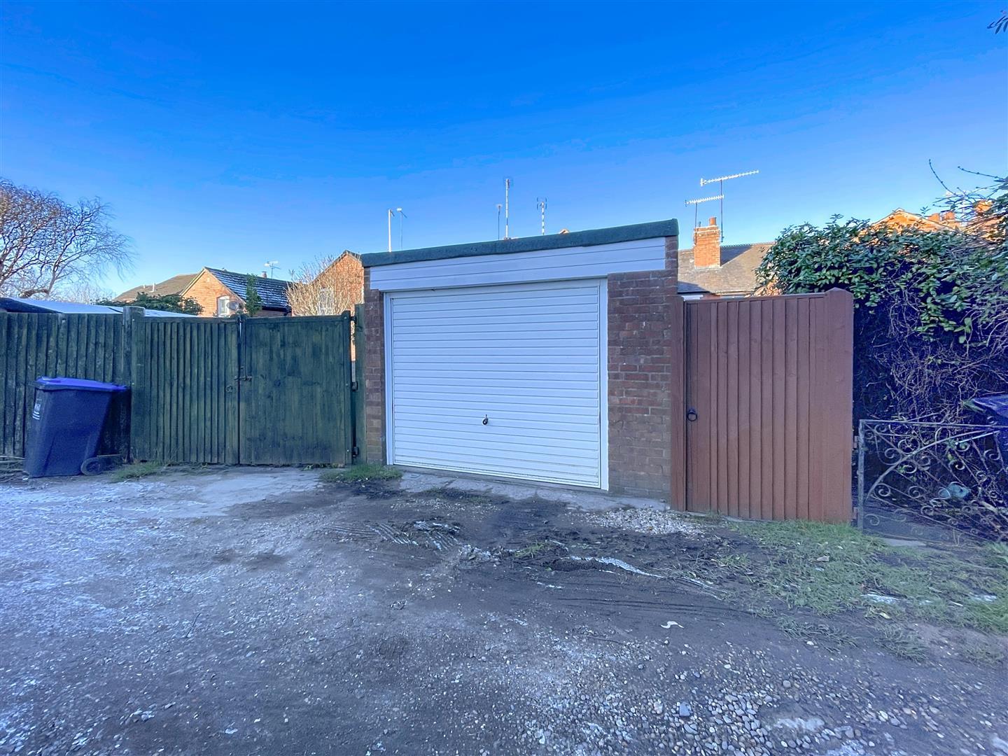 With metal up and over door to front, power and light connected with shelving, rear window and door to garden.